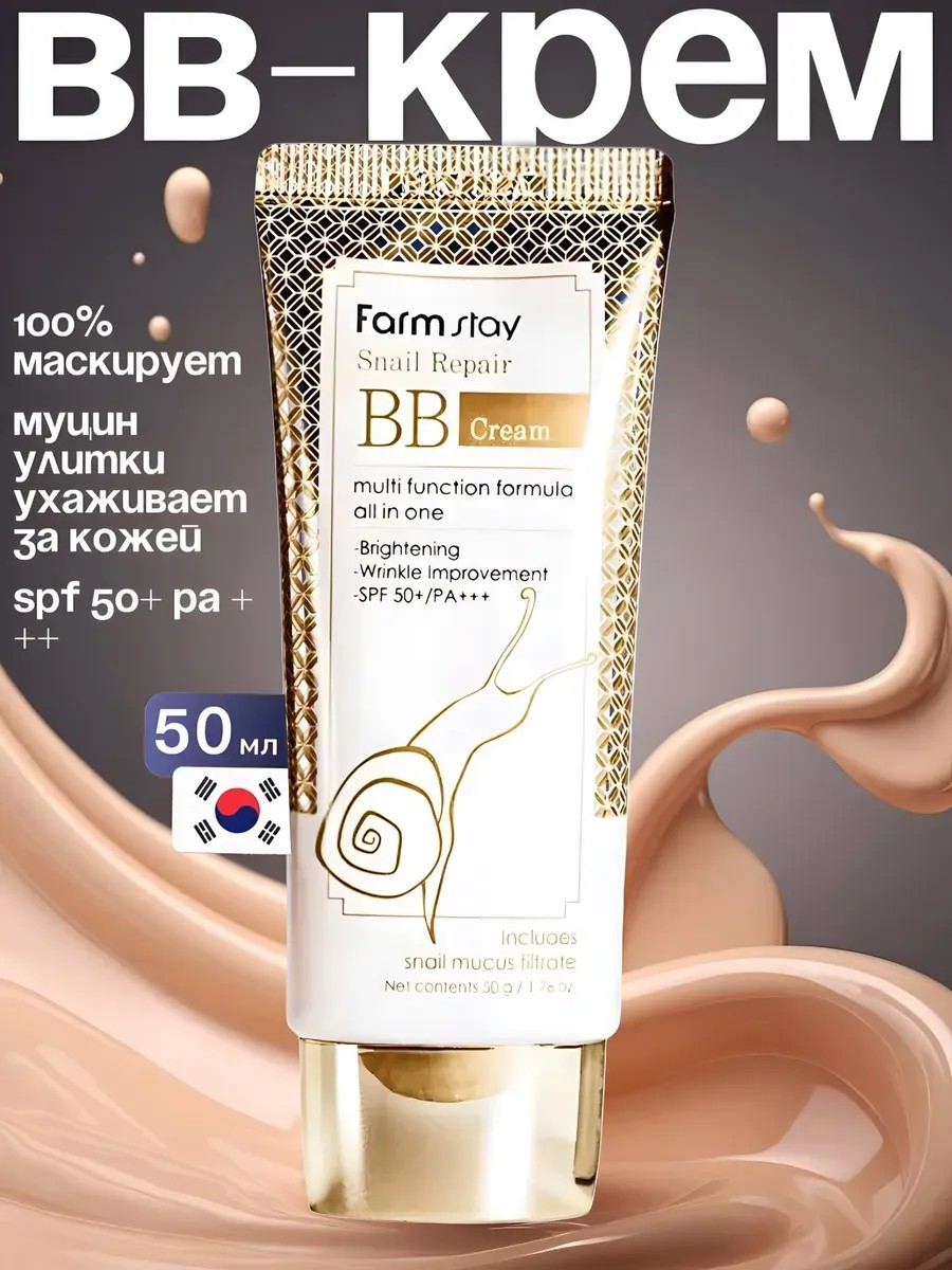 В состав этого крема входит муцин улитки, известный своими увлажняющими и восстанавливающими свойствами. Он стимулирует регенерацию клеток, выравнивая текстуру кожи и повышая ее упругость. BB-крем увлажняет и питает кожу, подстраиваясь под любой тон, маскируя покраснения, темные пятна и расширенные поры.