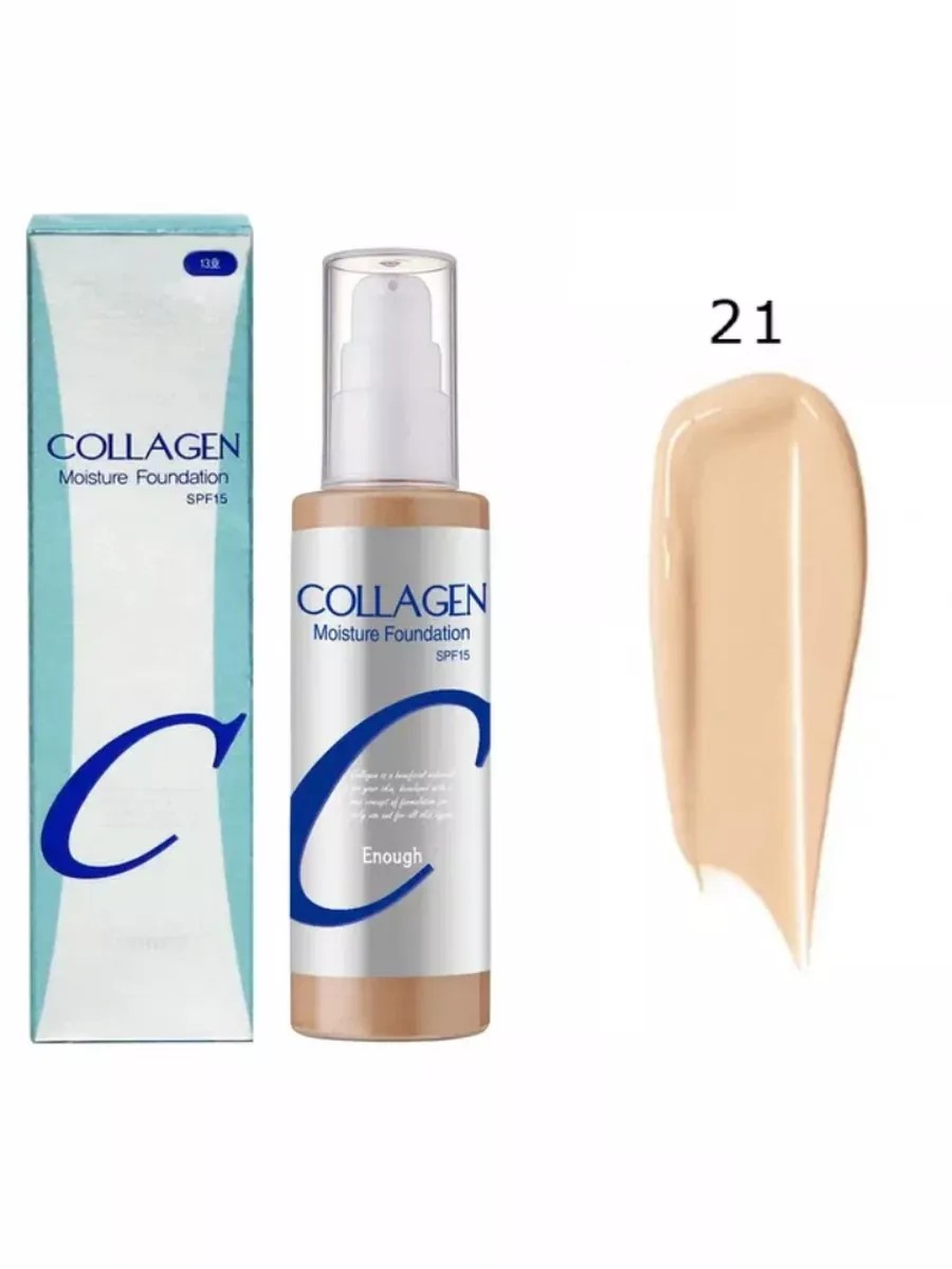 Enough Collagen Foundation #21 is a high-quality foundation designed to provide flawless coverage and a natural finish.Enough Collagen Foundation #21 provides even coverage and flawless coverage, concealing imperfections and highlighting skin's best features. Thanks to this, your face will look fresh and rested.Enough Collagen Foundation #21 contains collagen, which helps improve skin elasticity and helps fight wrinkles. This makes it an excellent choice for those who want to maintain the youthfulness and beauty of their skin.Enough Collagen Foundation #21 applies and spreads easily over the skin, providing even coverage. It also has excellent staying power, allowing it to stay on the skin all day long. Enough Collagen Foundation #21 is presented in a convenient bottle with a dispenser, which ensures hygiene and economical use. By choosing Enough Collagen Foundation #21, you get a quality product that will help you look great every day.