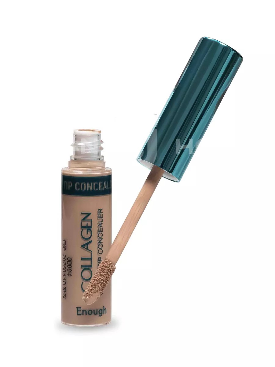 Консилер с коллагеном для глаз и лица Collagen cover tip concealer №01 Enough – корейская косметика, маскирующая несовершенства кожи. Маскирующее бьюти средство с корректирующим эффектом выравнивает тон лица, скрывает покраснения, прыщи и пятна постакне. В составе косметического продукта коллаген и солнцезащитный компонент SPF 36 +++. Благодаря этим ингредиентам кремообразный корректор обладает уходовым эффектом, увлажняя и защищая кожу от солнца. Стойкое тонирующее средство тон№1 с удобной кисточкой обладает противовоспалительным эффектом и подойдет для нежной кожи вокруг глаз. Отлично маскирует пигментные пятна, неровности, пигментацию, темные круги или синяки под глазами. Это хороший выбор для маскировки пигментных пятен, шрамов и следов постакне, прыщиков, покраснений, неровностей и пигментации перед нанесением макияжа. Косметика помогает добиться естественного сияния кожи лица и уменьшения высыпаний. Скрывает покраснения кожи, корректирует мешки под глазами, обеспечивает идеальный контуринг лица для профессионального макияжа. Наносите точечно на воспаления или покраснения, или воспользуйтесь методом скульптора для лица вместе с бронзатором и тональным средством.