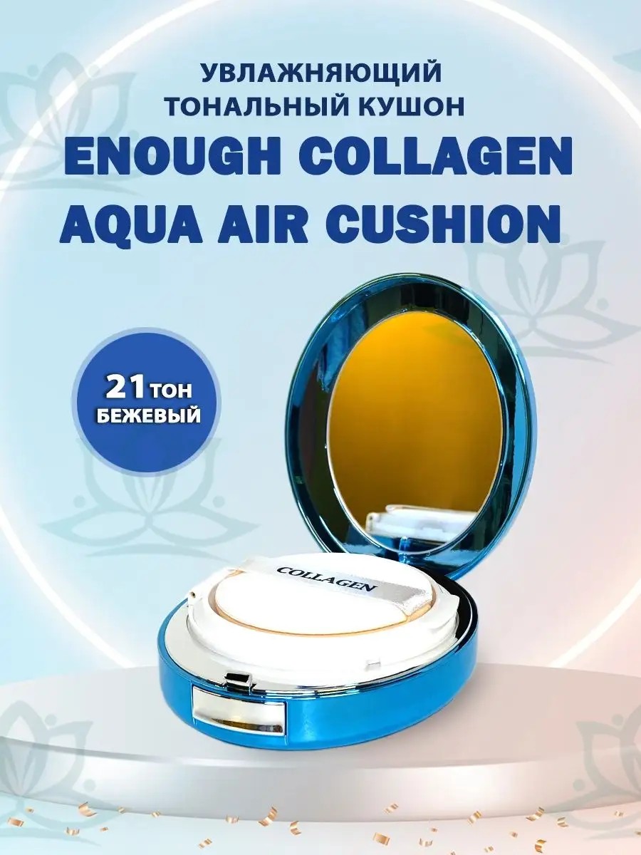 Компактный кушон Enough Collagen Aqua Air Cushion на основе коллагена с увлажняющими компонентами создает идеальное покрытие, позволяя скрыть любые недостатки кожи. Благодаря технологии air-cushion, кушон обеспечивает не только идеальное натуральное покрытие, но и защищает от солнечных лучей, обеспечивает глубокое увлажнение, повышает эластичность кожи, защищает от воздействия внешних факторов и свободных радикалов. Кушон поддерживает кожу увлажненной и свежей на протяжении всего дня, регулирует работу сальных желез. Кушон безупречно маскирует недостатки тона и текстуры кожи, не создавая эффекта маски. Кушон имеет степень защиты от солнца - SPF50. Применение: нанести необходимое количество средства на кожу и равномерно распределить по лицу, используя специальный спонж, который есть в наборе с кушоном. Для лучшего эффекта после нанесения немного подождите, чтобы кушон адаптировался на коже. После продолжите нанесение макияжа.