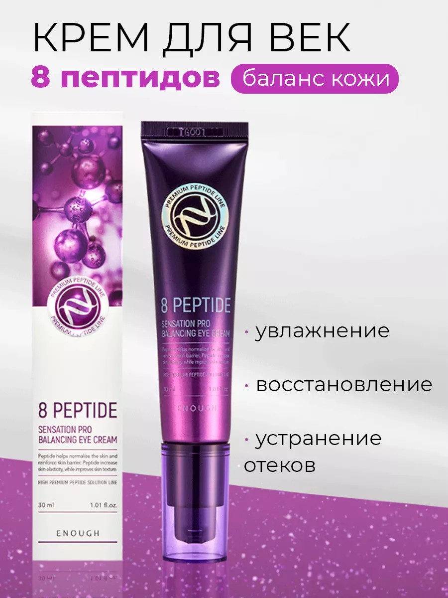 Омолаживающий крем для век с пептидами ENOUGH 8 Peptide Sensation Pro Balancing Eye Cream обладает ярко выраженным подтягивающим действием и эффектом лифтинга.