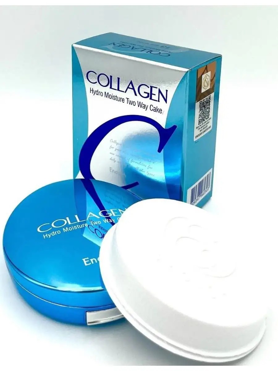 Enough Collagen Hydro Moisture Two-Way Cake SPF25 PA++, a refillable collagen powder, is suitable for all skin types. It perfectly sets makeup, mattifies, and leaves skin smooth and velvety. It doesn't cause dryness or flaking. The powder contains marine collagen, which accelerates collagen and elastin synthesis, improves skin elasticity, and moisturizes. It provides a lightweight, weightless coverage, is excellent for setting makeup, prolonging its wear, and eliminating the oily shine that appears throughout the day. Directions: Use as a finishing touch or spot-on to conceal imperfections. Apply the powder with the included sponge. A refill is included. Shade 13. Face powder, Korean face powder, mattifying face powder, face powder with SPF, compact face powder, face powder makeup, moisturizing face powder, moisturizing Korean face powder, Korean powder, collagen powder.