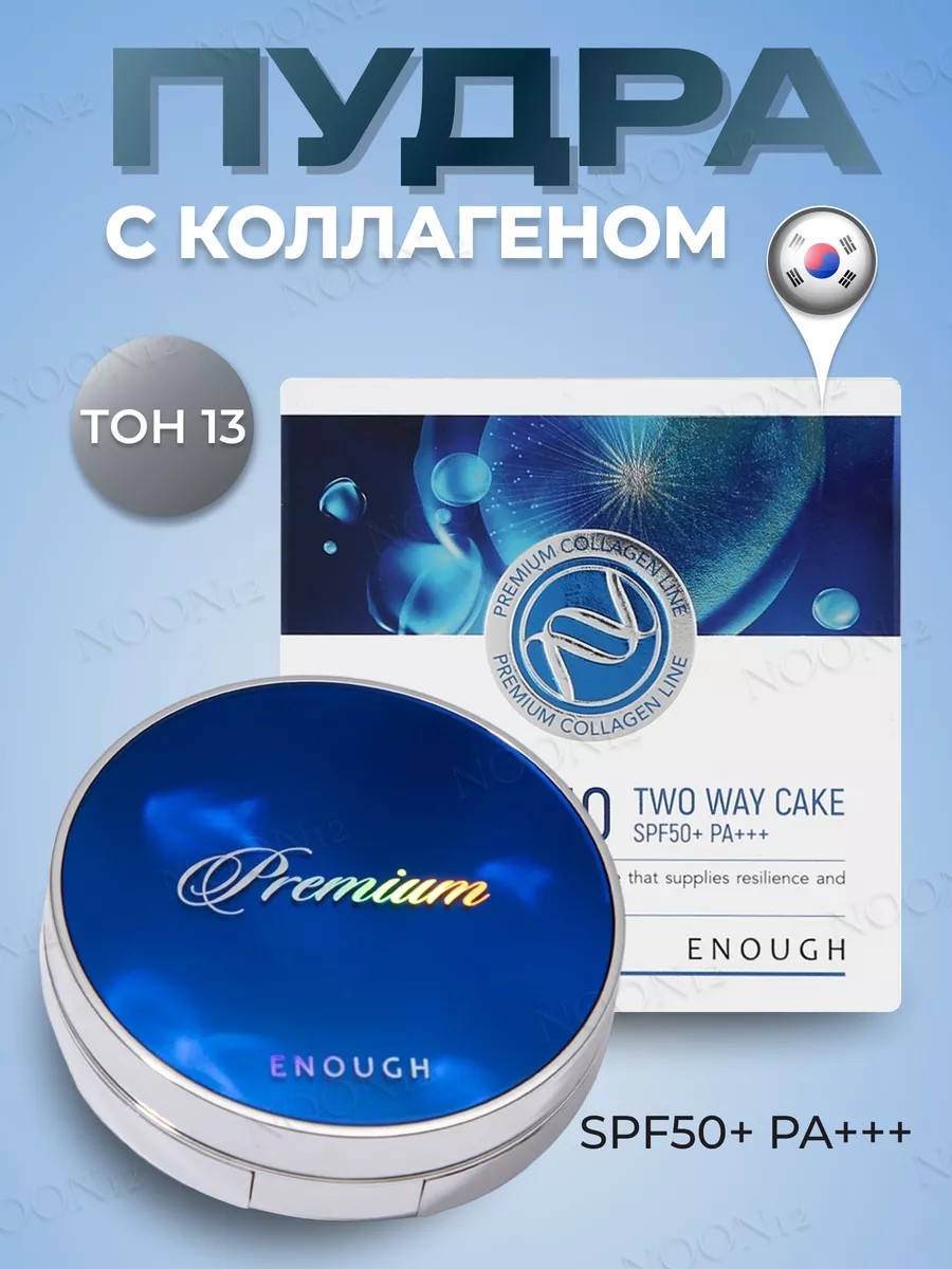 Enough PREMIUM ULTRA X10 TWO-WAY CAKE тон13 (INCLUDING REFILL) Компактная матирующая пудра с коллагеном корея создаст идеально ровное и при этом невесомое покрытие, не подчеркивая шелушения. Она отлично фиксирует макияж, матирует, делает кожу гладкой и бархатистой. Входящий в состав морской коллаген ухаживает за кожей, глубоко увлажняя её. SPF 50 защищает кожу от ультрафиолета. Способ применения: Кистью или спонжем из набора нанесите пудру на кожу, растушевывая текстуру от центра лица к контурам. Используйте в качестве завершающего этапа макияжа. Только для наружного применения.