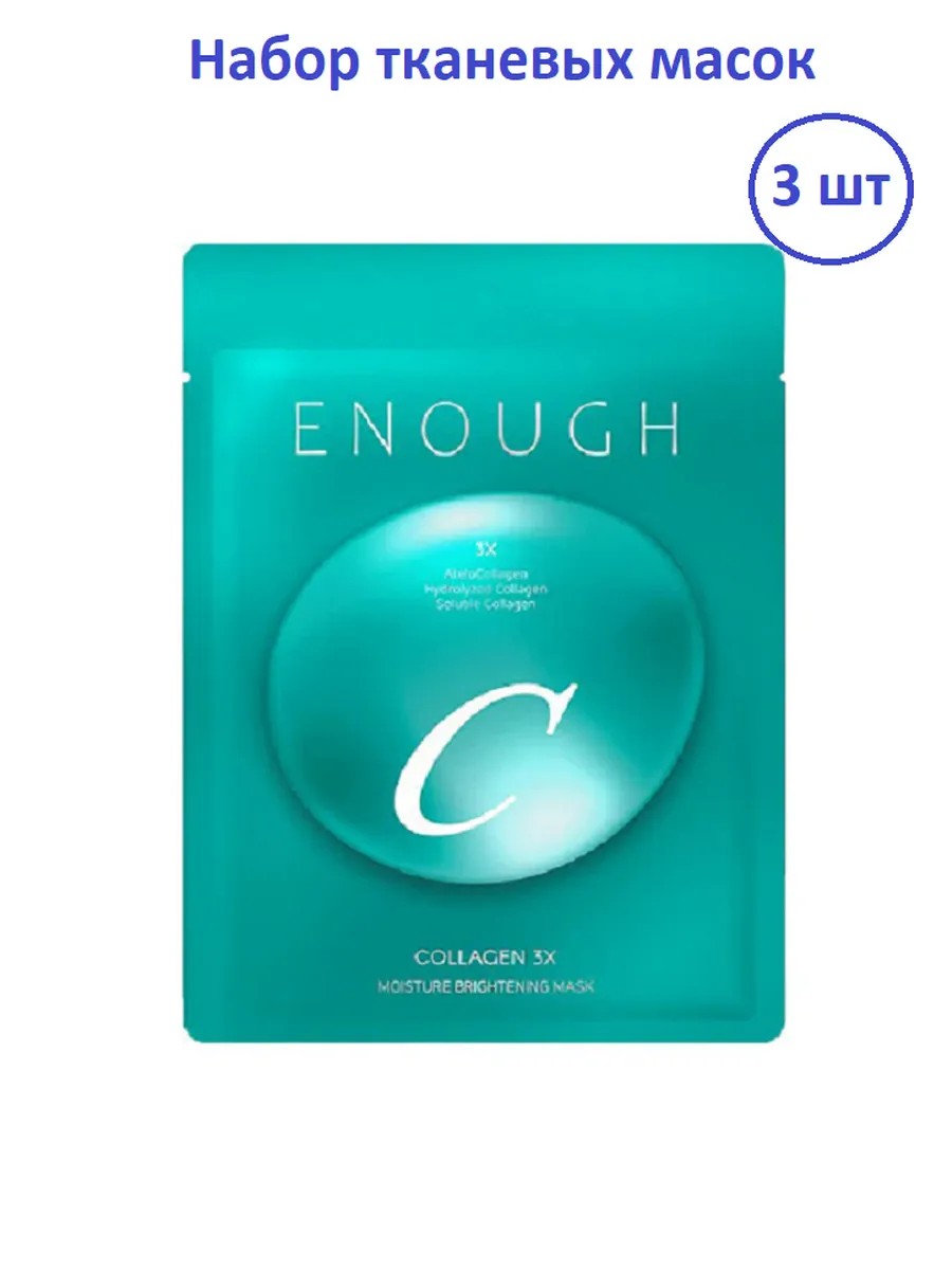 Набор тканевых масок для лица с коллагеном Collagen 3X Moisture Brightening Mask от Enough - инновационный уход за кожей от ведущих южнокорейских экспертов, объединивших глубокое увлажнение, питание и восстановление в одном косметическом продукте. Ткань маски пропитана концентрированной сывороткой с высоким содержанием коллагена и экстрактов целебных трав. Эти компоненты работают в комплексе, глубоко проникают в слои эпидермиса, восстанавливая водный баланс, улучшают структуру кожи и возвращают ей естественное сияние.