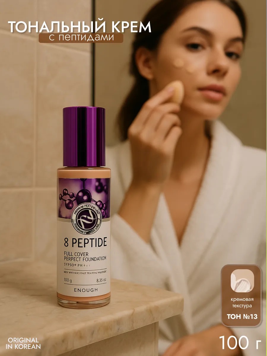 Откройте для себя корейский тональный крем с пептидами, который станет незаменимой основой вашего макияжа. Коллаген делает кожу упругой и эластичной. 2 оттенка: тон № 13 светло бежевый, светлый. Это средство создано специально для тех, кто ценит высококачественную косметику и мечтает о безупречном цвете лица. Тональник эффективно маскирует несовершенства, такие как покраснения, мелкие высыпания и пигментацию, при этом ухаживая за кожей с признаками возрастных изменений.