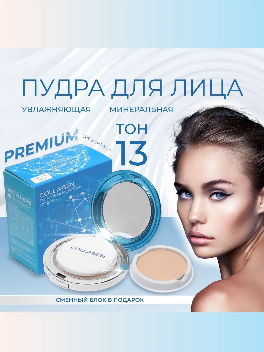Увлажняющая пудра для лица Collagen со сменным блоком фиксирует макияж, матирует, делает кожу гладкой и бархатной. Пудра для лица содержит коллаген, который ускоряет синтез собственного коллагена, повышает эластичность кожи и увлажняет. Компактная пудра для лица с коллагеном создаст идеальное матовое покрытие, благодаря коллагену сделает кожу более упругой. Пудра Коллаген подстраивается под ваш тон кожи, не раздражает кожу, скрывает недостатки, такие как веснушки, пигментные пятна и неровности кожи. Пудра для лица состоит из частиц, легкой текстуры, что позволяет ей делать кожу удивительно гладкой, выравнивать тон лица. Контролирует выработку кожного сала, сводя к минимуму блеск кожи. В комплекте идёт сменный блок. Применение: используйте как завершающий этап макияжа или для маскировки несовершенств. Фактор защиты от солнца SPF 25 PA++