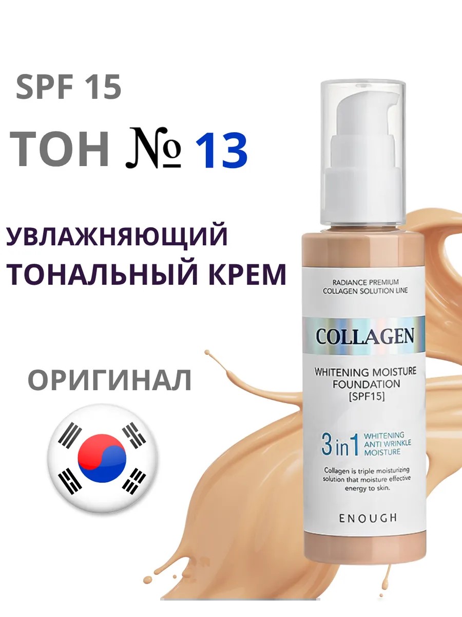 Тональный крем с коллагеном для сияния кожи Enough Collagen Whitening Moisture Foundation SPF 15 великолепно скрывает несовершенства, корректирует тон, увлажняет и возвращает коже естественное здоровое свечение.