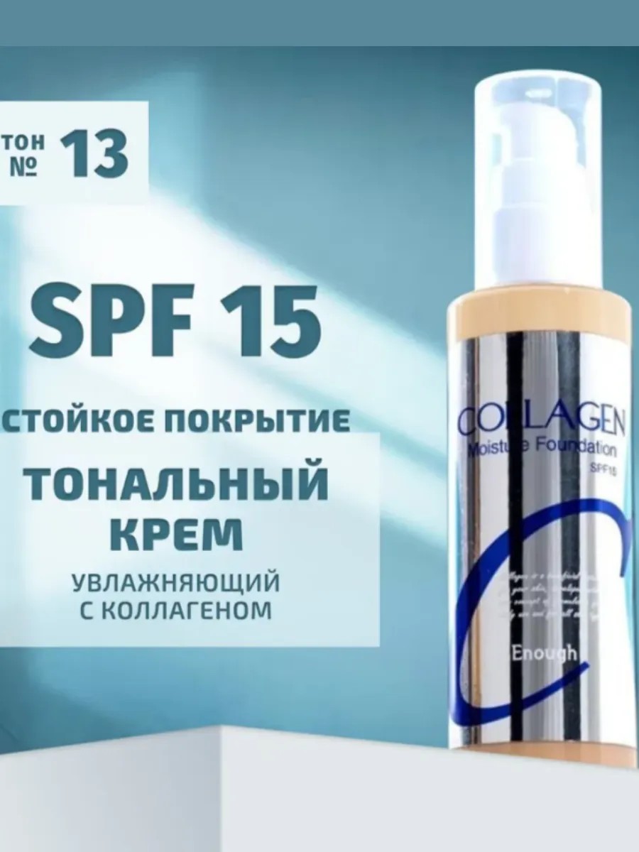 Увлажняющий тональный крем с коллагеном Collagen Enough Moisture Foundation. Защита солнца spf 15. Средство приятно ложится, увлажняет и питает. Коллаген делает кожу упругой и эластичной, убирает морщинки, анти возрастной эффект, отбеливание. Тональная основа помогает скрыть несовершенства, следы прыщей, покраснений и пигментации, тональник с матирующим эффектом. Экстракт центеллы азиатской работает с противоспалительным действием, уменьшает отеки. Тонизирующий жидкий состав скрывает акне и постакне. угри, черные точки, пигментные пятна, темные круги и синяки под глазами. Крем не плотный с легким покрытием, при этом стойкий. Тоналка не сушит и дает здоровое сияние. Коллаген разгладит структуру кожи, окажет противовоспалительное и ранозаживляющее действие. Тональная основа с спф в двух оттенках: светлый тон №13 слоновая кость и цвет №21 бежевый. Косметику для макияжа, тональную основу надо нанести на увлаженную кожу. Благодаря этому тон ложится ровным слоем и не забивает поры. Выравнивающий профессиональный крем помогает скрыть несовершенства, и получить лифтинг эффект. Используйте крем как эффект сияние, как матовый финиш макияжа. Тонирующий и матирующий крем корейский подходит как для сухой, чувствительной и нормальной кожи, так и для жирной, комбинированной, проблемной и возрастной. Профессиональная косметика для лица и тела - уход и здоровье. Оригинальная корейская косметика из Кореи для женщин. Вариант для подарка. Проверить продукт на оригинал отсканируйте QR код на упаковке.