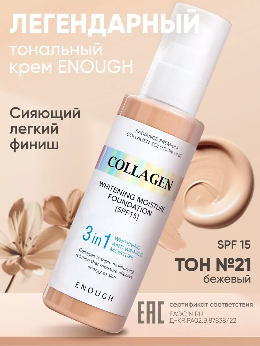 ENOUGH Увлажняющий тональный крем для лица Collagen 3in1 №21