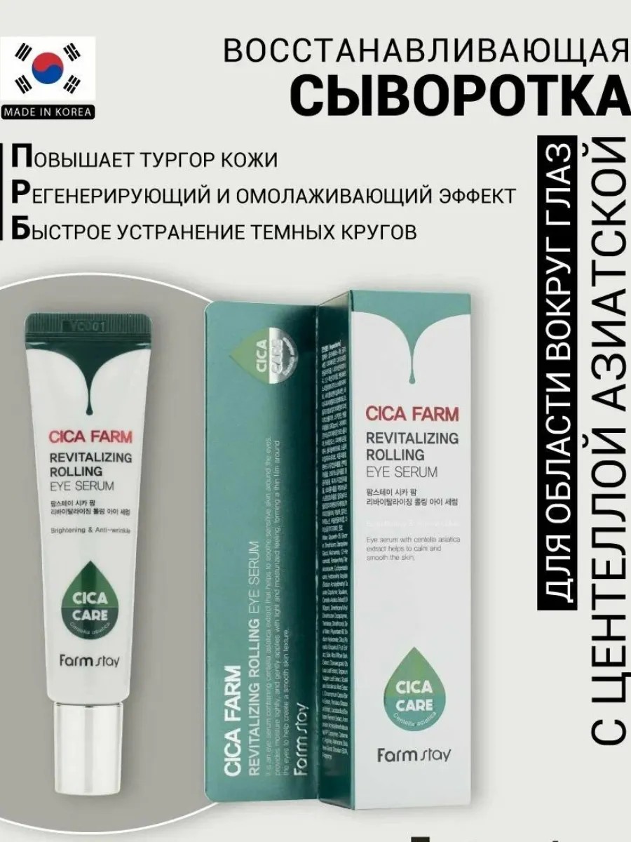 Восстанавливающая сыворотка для кожи вокруг глаз с центеллой азиатской. Эффективная восстанавливающая сыворотка для кожи вокруг глаз. Рекомендуется для тонкой и чувствительной кожи, подойдет для поврежденной и уставшей после стресса и агрессивных внешних воздействий. Преимущества: оказывает увлажняющее и успокаивающее действие, помогает справиться с отечностью и темными кругами, делает кожу более эластичной, уменьшает выраженность морщин, снижает воздействие агрессивных погодных воздействий, защищает от преждевременного увядания. Экстракт центеллы азиатской обладает противовоспалительным и ранозаживляющим действием, способствует восстановлению барьерных свойств кожи и удержанию влаги, снижает чувствительность кожи, уменьшает отеки, оказывает сосудоукрепляющее действие и уменьшает купероз. Ниацинамид осветляет пигментацию различного происхождения. Аденозин уменьшает количество и глубину морщин. Способ применения: Нанести на очищенную кожу вокруг глаз