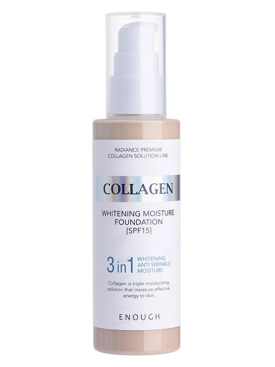 ENOUGH 3in1 Collagen Foundation, Shade 13, 100ml. This collagen-infused foundation creates invisible coverage without clogging pores or causing breakouts. It leaves your complexion looking fresh, rested, and radiant. How to use: Apply the desired amount of foundation and blend evenly using a foundation sponge, brush, or your fingertips.