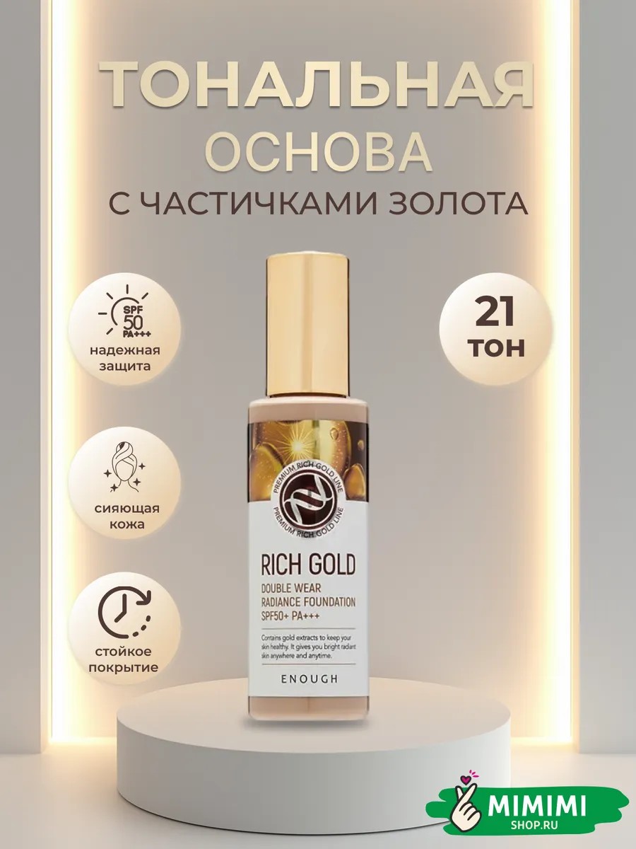 ENOUGH Тональная основа c частичками золота SPF50+ тон 21, 100г