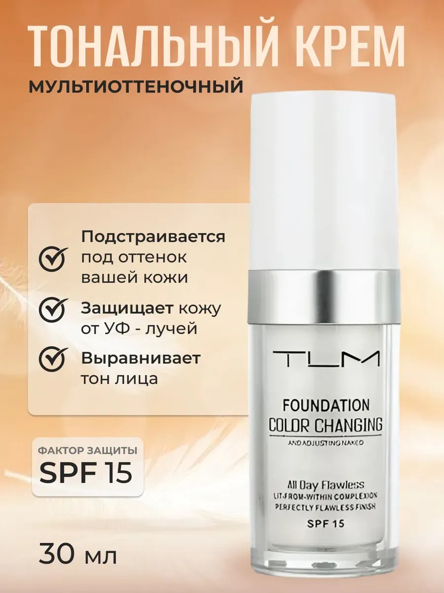 Преимущества основы TLM Foundation color Changing Тональная основа имеет легчайшую структуру. Флюид мгновенно впитывается в кожу, не оставляя следов и чувства липкости. Крем не течет, не смазывается, не подчеркивает шелушения. Добавочные компоненты – коллаген и фитоэкстракты- смягчают и питают дерму, придавая ей ухоженный и здоровый вид. Тональная основа подходит для маскировки незначительных недостатков. Мелкие прыщики, синяки под глазами или покраснения она скроет без проблем. Для более серьезных дефектов – следов от акне, рубцов и шрамов- потребуется крем консистенции поплотнее.У флюида нет ярко выраженного цветового пигмента. В бутылочке средство имеет белый цвет, но попадая на кожу, адаптируется под родной оттенок. В состав крема входят капсулы, созданные по специальной технологии – изменять цвет непосредственно на коже. TLM Foundation color Changing – прекрасный выбор для тех девушек, которые не могут подобрать тональное средство, подходящее по тону. Универсальный крем подойдет и смуглянкам, и белоснежкам. Легкая текстура крема – идеальная основа для летнего макияжа, когда лицо не хочется перегружать избытком косметики. Крем включает ультрафиолетовые фильтры, предупреждающие чрезмерное влияние солнца на кожу. По способу нанесения и ощущениям на лице тональник больше похож на ВВ-крем. Продукт экономно расходуется – у флакончика удобный дозатор, выдающий средство буквально по горошине. Объем – 30 мл. Небольшую бутылочку удобно носить в косметичке или брать с собой в поездки – она не занимает много места.