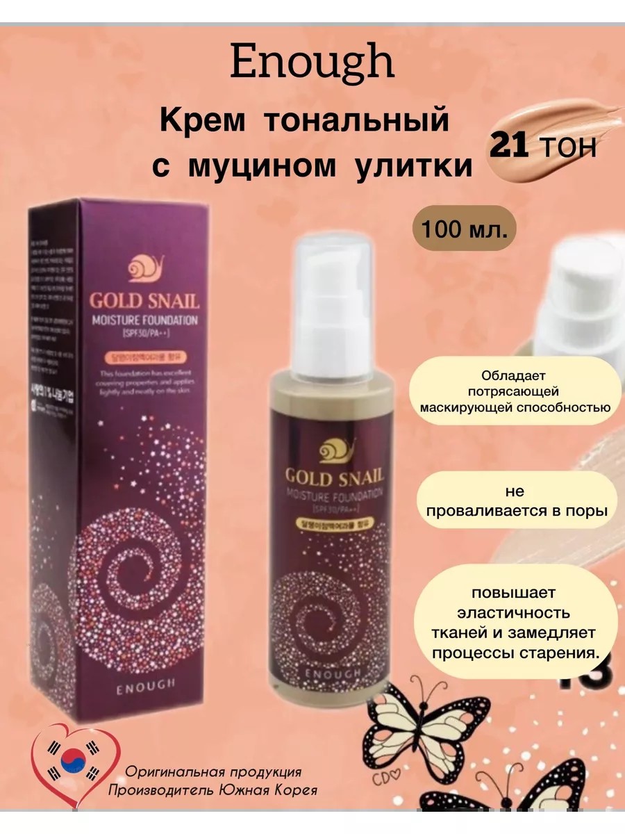 ENOUGH Тональный крем с муцином улитки Gold Snail 21 тон
