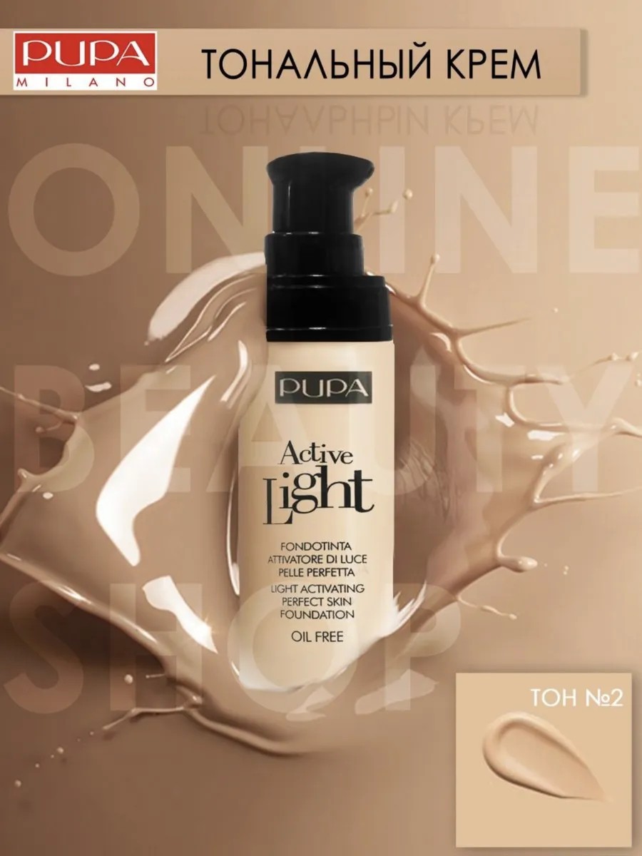 Инновационное тональное средство PUPA Active Light SPF 10 - активатор, который усиливает природное сияние вашего лица.