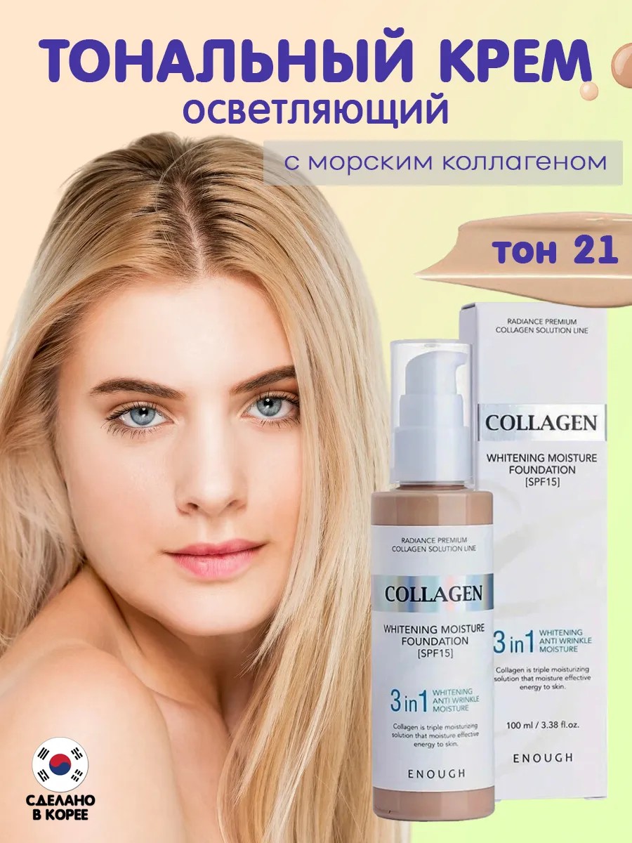ENOUGH Тональный крем для лица осветляющий с морским коллагеном №21