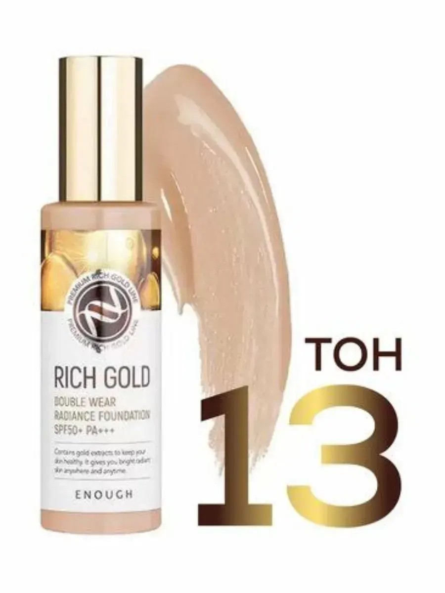 Корейский оригинал!Омолаживающий тональный крем Rich Gold Double Wea Radiance Foundation с spf для лица 50 для безупречного макияжа. Увлажняющий крем для лица Корея с легким покрытием скрывает несовершенства, постакне, покраснения от прыщей. Содержит: золотистые пигменты, придающие коже сияние, гладкость и выравнивание. Корейская основа под макияж придаёт сияние и свежесть. Коллаген делает кожу упругой и эластичной. 2 оттенка: тон № 13 светло бежевый, светлый. Тон № 21 бежевый. Наносите тональник на хорошо увлаженную кожу, чтобы тоналка ложилась тонким ровным слоем. Тональная основа подходит для всего типов кожи женщин: для жирной кожи, сухой, чувствительной, комбинированной и проблемной кожи лица. Обеспечит плотное матовое покрытие. Стойкий, и при этом легкий профессиональный крем без эффекта маски, как у вв крема. Тональное средство имеет матирующий эффект и степень защиты спф 50, подходит для тела, Корейская косметика для лица тоналка - оригинал, поступает напрямую с фабрики-производителя из Кореи.