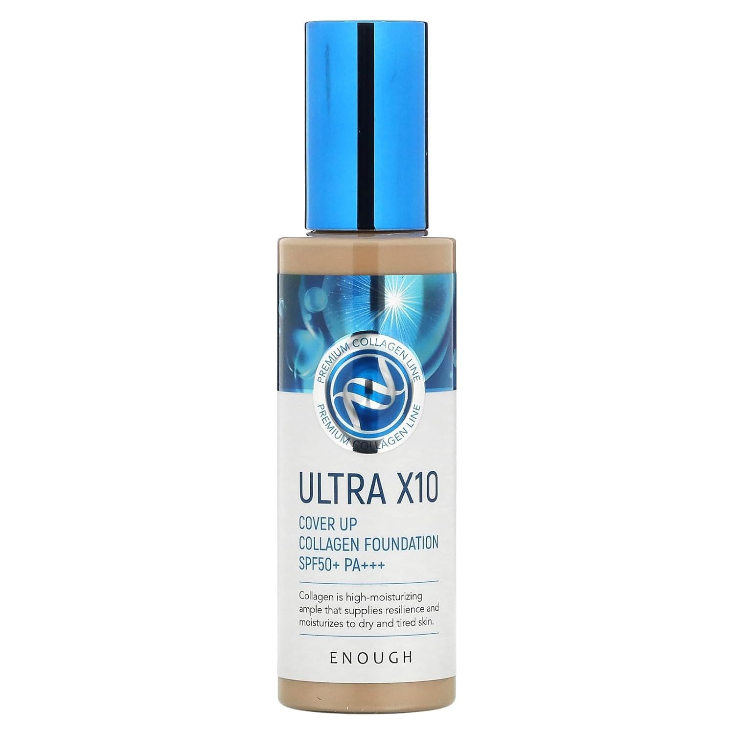 Experience the pinnacle of Korean skincare and makeup with the Enough Ultra X10 Cover Up Collagen Foundation. This hydrating foundation is specially formulated for dry skin, providing deep moisture and full coverage in one. The innovative formula combines the benefits of a tinted moisturizer with the protection of sunscreen, offering SPF 50+ PA+++ to shield your skin from harmful UV rays. Infused with collagen, this foundation not only hydrates but also helps improve skin elasticity and reduce the appearance of fine lines and wrinkles. The lightweight, breathable formula ensures comfortable wear all day long, while delivering a flawless, natural finish. It blends seamlessly into the skin, concealing imperfections, evening out skin tone, and leaving your complexion looking smooth and radiant. Ideal for mature skin, the Enough Ultra X10 Cover Up Collagen Foundation contains nourishing ingredients like hyaluronic acid, betaine, adenosine and centella asiatica extract. These powerful components work together to soothe, hydrate, and protect your skin, making it suitable for sensitive skin types as well. This foundation is perfect for daily use, providing a long-lasting, sweat-proof finish that stays put even in humid conditions. Whether you're looking for a professional makeup look or a natural everyday glow, this foundation delivers. It acts as a primer, foundation, and sunscreen all in one, simplifying your beauty routine. With 3.53oz of product, this foundation offers great value and is perfect for travel, ensuring your skin stays hydrated and protected wherever you go. It’s also an excellent gift for women who appreciate high-quality, multi-functional cosmetics. Embrace the best of Korean skincare and makeup with the Enough Ultra X10 Cover Up Collagen Foundation, your go-to product for hydrated, youthful, and radiant skin. Ideal for all skin types, especially dry and mature skin, this foundation is a must-have in your beauty arsenal.