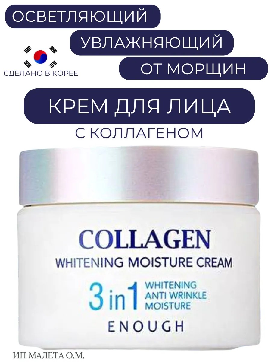Осветляющий корейский антивозрастной крем для лица ENOUGH оригинал с коллагеном, гиалуроновой кислотой и центеллой подходит для отбеливания и осветления кожи утром и вечером.