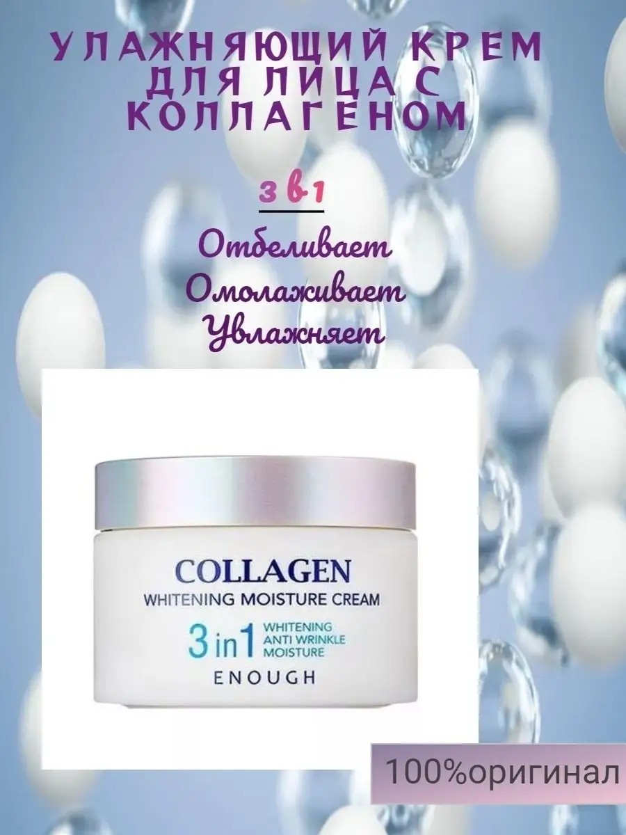 ENOUGH Whitening Moisture Cream 3-in-1, a unique skincare product, is a moisturizing, restorative, rejuvenating, protective, and anti-aging facial cream with collagen. This unique skincare product is rich in nutrients and vitamins. Enaugh 3-in-1 skin cream provides moisturizing, restorative, rejuvenating, protective, and anti-aging benefits. Thanks to collagen, the cream nourishes, firms, and smoothes fine wrinkles. This moisturizing cream fights the signs of aging and fading, providing a lifting effect. Enaugh Collogen cream lightens age spots, whitens, and protects against the negative impact of environmental factors. Suitable for both day and night use, Enaugh is the best Korean cream. Buy it as a gift for yourself, your mom, sister, or your loved one. It's perfect for any occasion or special occasion. The price is reasonable. Korean cosmetics are perfect for everyday use. Cream instructions: Apply to cleansed skin. Use morning, day, and night. Ideal for use under makeup.