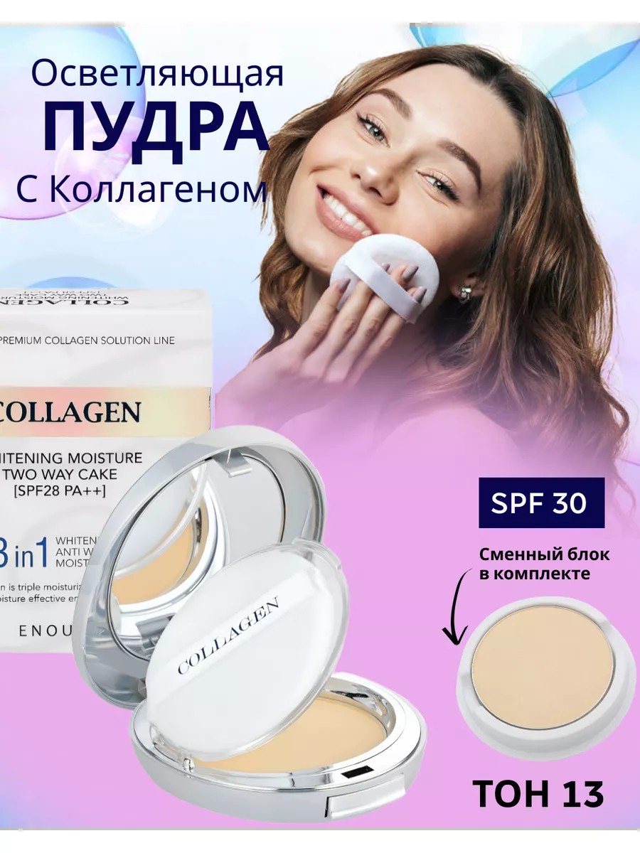 Мягкие прикосновения пудры делают вашу кожу нежной и шелковистой, сохраняя макияж на долгое время. Коллаген — увлажняет и питает кожу в самых глубоких слоях эпидермиса, создавая на ее поверхности невидимую защитную пленку, которая не позволяет влаге испаряться, улучшает тургор кожи, разглаживая и выравнивая ее поверхность, повышает упругость и эластичность, борется с мелкими морщинками, осветляет пигментацию.