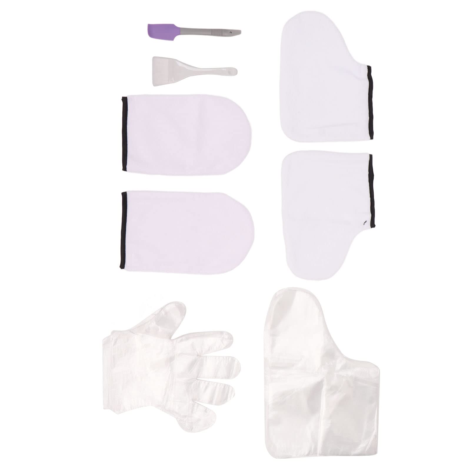 [PROFESSIONAL WAX SPA SET] - Includes gloves, socks, a wax brush, a spatula, disposable towels, and foot covers, providing a complete wax treatment experience. [SIMPLE OPERATION] - Rub your hands with wax, put on disposable towels, then put on the towels and foot covers, and remove them after a few minutes for smooth, moisturized skin. [IDEAL FOR SALON OR HOME USE] - Suitable for professional paraffin treatments in salons, spas, or for home use. Experience professional-quality treatments in the comfort of your own home. [MAXIMUM MOISTURIZING EFFECT] - Keep the wax warm on your hands and feet to help your skin absorb maximum moisture, leaving your skin soft and hydrated. [COMFORTABLE AND DURABLE MATERIALS] - The gloves and foot covers are made of comfortable, skin-friendly fabric. The wax spatula is made of high-temperature resistant silica gel to remove excess wax. Specification: Item Type: Wax Treatment Set Material: ABS, Fabric Package List: 1 x Large White Wax Brush 2 x White Cloths 2 x White Cloth Foot Covers 1 x Small Purple Wax Spatula 100 x Disposable Towels 100 x Disposable Foot Covers