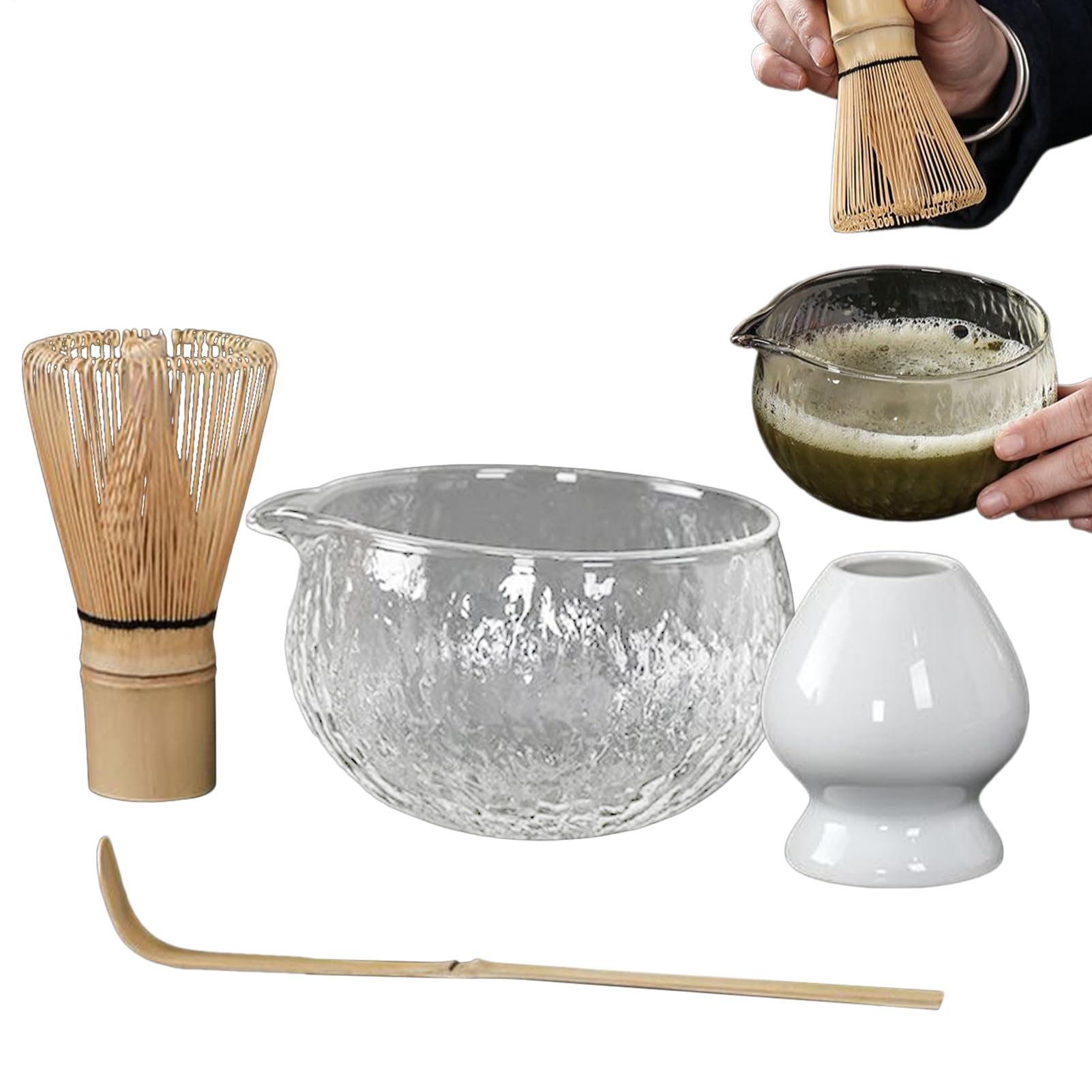 Unlock the full potential of ceremonial matcha with our expertly crafted matcha set. This versatile collection is ideal for both beginners and connoisseurs, enhancing the tea-making process and honoring Japanese traditions. Specifications: Product Name: Matcha Set. Material: Glass, Ceramic. Product Size: As shown. Approximate Weight: 850g set. Package Contents: 1 x Matcha Set. Note: Due to lighting effects during photography and different monitor settings, the product colors in the image may differ slightly from the actual color. Please allow for a 1-2cm difference in size due to manual measurement.