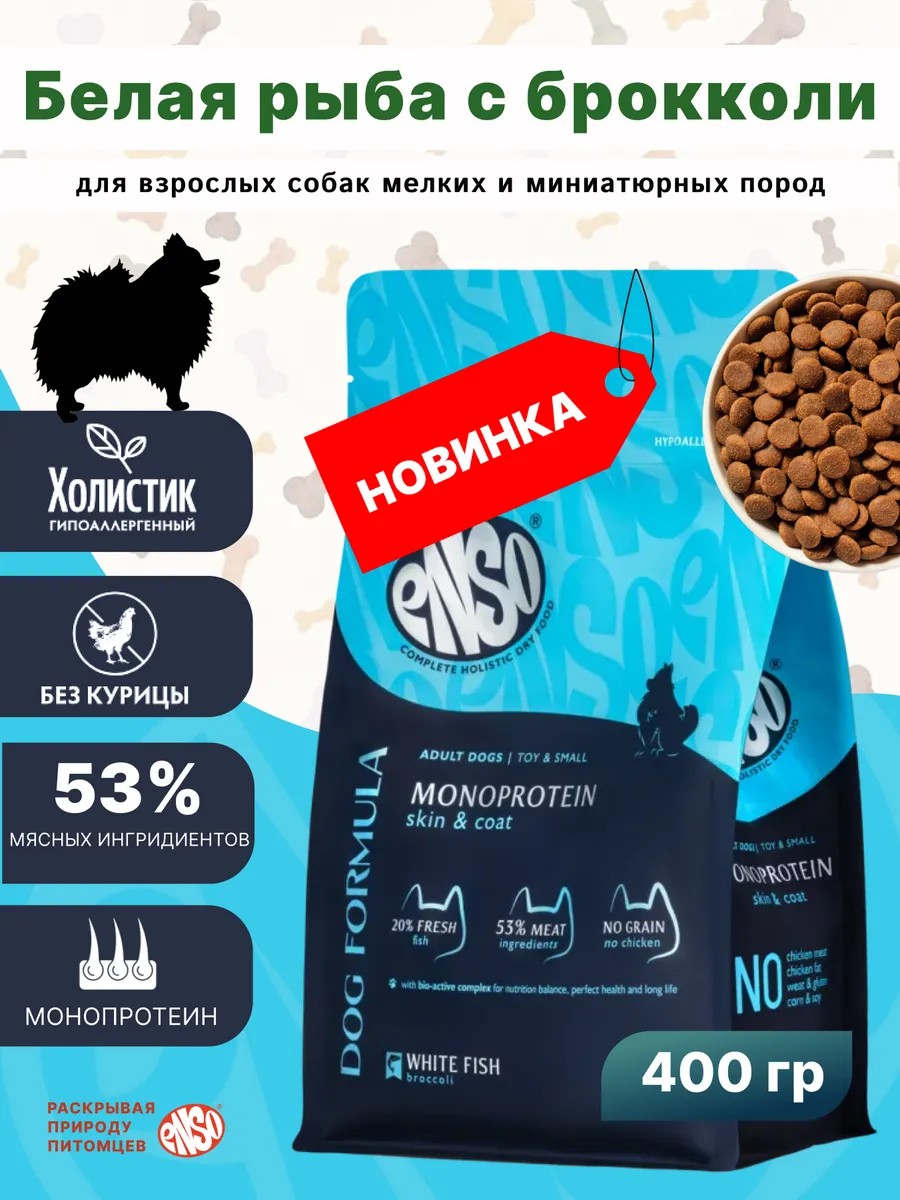 Enso Сухой корм для взрослых собак мелких и миниатюрных пород с белой рыбой и брокколи 0,4кг