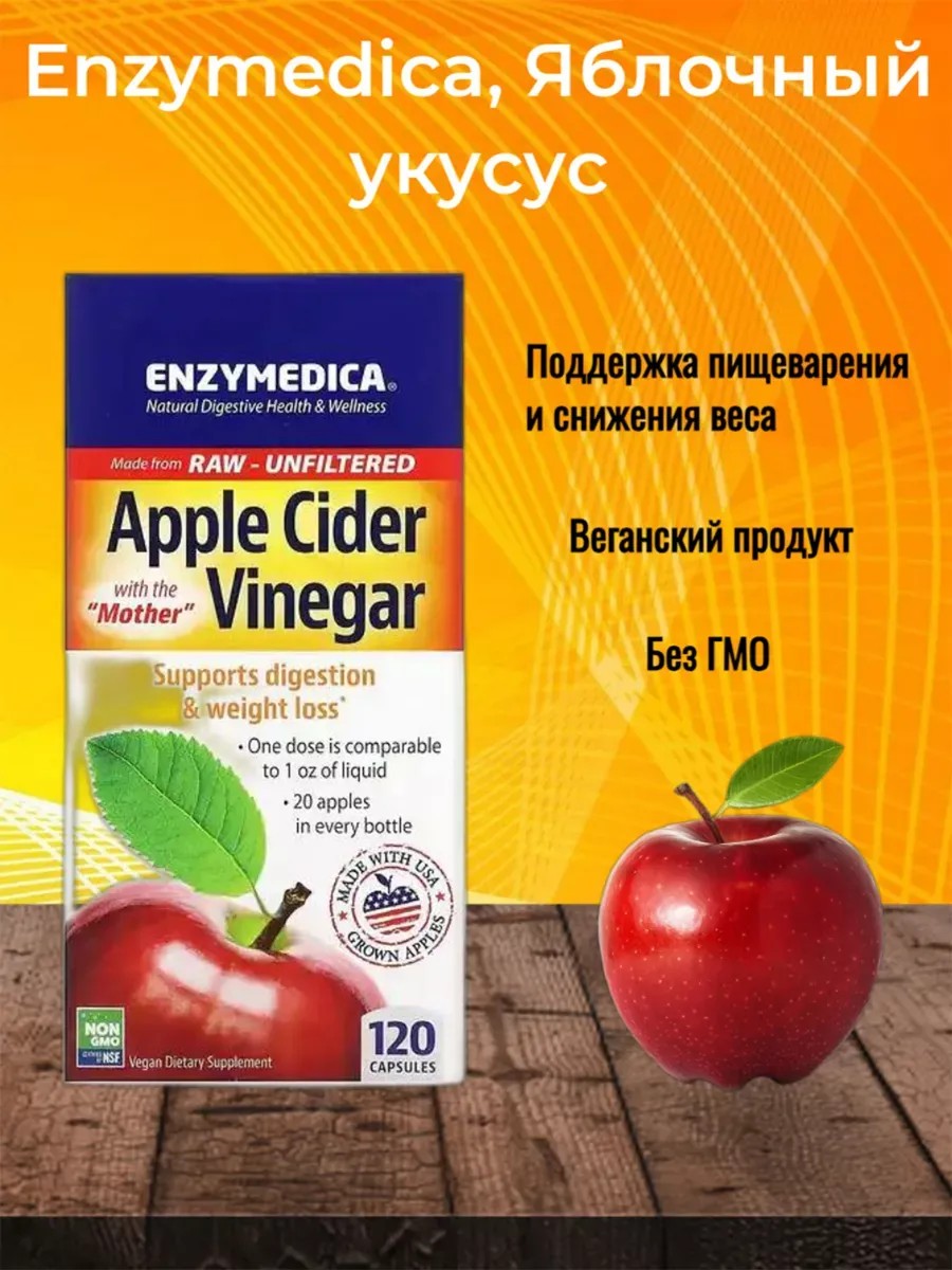 enzymedica Яблочный уксус с уксусной маткой, 120 шт.