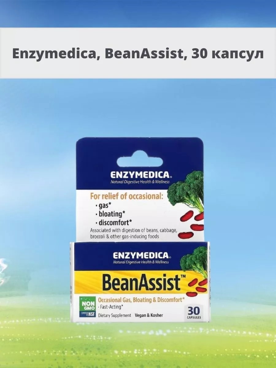BeanAssist содержит фермент альфа-галактозидазу, который расщепляет сложные углеводы на сахара, которые легче усваиваются естественным путем. Полное переваривание этих продуктов может уменьшить дискомфорт и предотвратить газообразование и вздутие живота.