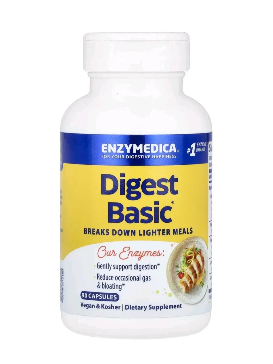 Digest Basic is a gentle digestive supplement that breaks down carbohydrates, fats, fiber, and proteins.