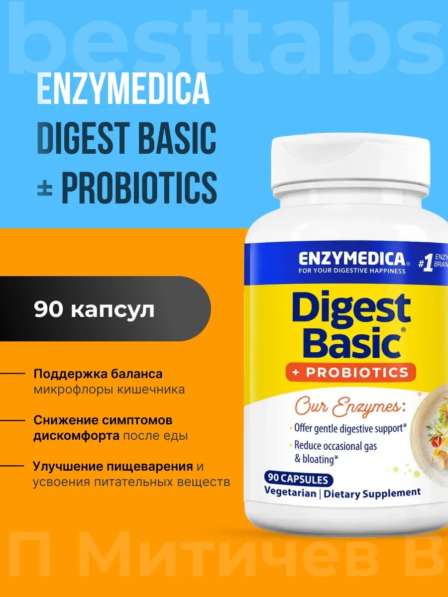 enzymedica Digest Basic + Probiotics, 30-90 капсул