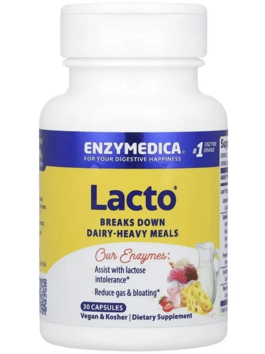 Lacto содержит лактазу и восемь других ферментов, которые синергетически переваривают молочные сахара, белки и жиры. Полное переваривание молочных продуктов может естественным образом уменьшить дискомфорт, характерный для непереносимости лактозы и казеина.