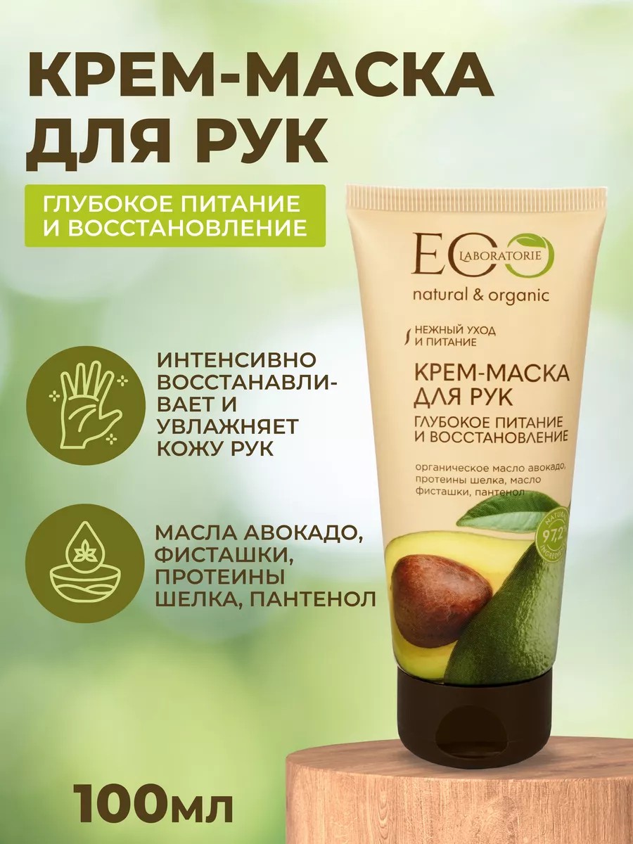 Крем-маска для рук EO Laboratorie с натуральными питательными ингредиентами интенсивно восстанавливает и увлажняет кожу рук. После процедуры кожа мгновенно преображается - становится мягкой, нежной и шелковистой. Активные ингредиенты: Органическое масло авокадо эффективно питает и увлажняет кожу, делает ее мягкой. Протеины шелка питают, смягчают и восстанавливают кожу. Фисташковое масло обладает тонизирующими, питательными, противовоспалительными, фотозащитными и антиоксидантными свойствами. Не содержит парабенов и силиконов.
