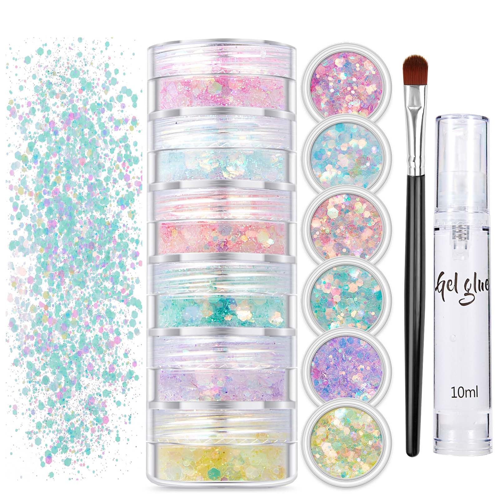 EONFAVE Lot de 6 stylos holographiques à paillettes pour le corps - Gel pailleté - Gel à paillettes - Couleur changeante - Tenue de festival, Halloween, rave, fête, corps (02).