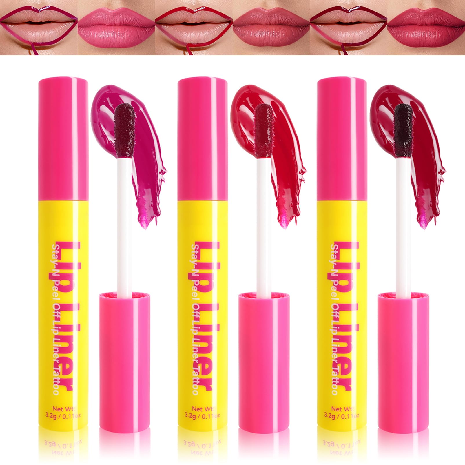 EONFAVE - 3-Pack Peel-Off Lip Pencils - Waterproof and Long-Lasting - Removable Lip Pencil - With a Matte Finish - Highly Pigmented Lip Tint - For Full Lips, Women, and Girls Quantity: 3 pieces Colors: Nude Pink, Pink, Cherry Pink Net Contents: 3.2g x 3 Lip Pencil Features: Save time and simplify your makeup routine. Waterproof and smudge-proof, long-lasting makeup. Trendy color combinations, rich and vibrant colors. Natural, safe, and gentle ingredients. Nourishing formula to care for your lips. Easy to use. Easy to remove without leaving any residue. How to Use Lip Pencil: 1. Apply an even layer along the lip line and leave for 1-2 minutes, depending on the thickness of the application. 2. Once the formula has hardened, slowly peel off the lip gloss film to reveal a smudge-proof, semi-permanent lip gloss. 3. It can also be used as a lip gloss on the lips for a plump, colorful effect. Warm Tips: ? Apply to clean, exfoliated, and dry lips. For external use only. Please store in a cool place away from light and direct sunlight. ? The appearance may vary due to lip color, lighting, and monitor settings. The actual product information applies. HOW TO USE 1. Apply an even layer along the lip line and leave on for 1-2 minutes, depending on the thickness of the application. 2. Once the formula has hardened, slowly peel off the lip gloss film to reveal a smudge-proof, semi-permanent lip gloss. 3. It can also be used as a lip gloss to achieve a plump, colored complexion. SAFETY WARNING Number See moreMultiple Uses: This lip liner tattoo not only outlines the lips but also fills them in with color. Use the pointed tip to outline your lips or use the flat side as a lipstick to fill them in. Easy to Use: The lip liner is easy to use and requires no special tools or techniques. Simply apply it directly to your lips, leave it for 1-2 minutes, and peel it off. It removes easily with cleansing oil and lotion. Nourishing Formula: The EONFAVE Peel Off Lip Liner contains natural plant extracts that strengthen the lip barrier. It's suitable for all skin tones and easily redefines the lip shape for a plump, three-dimensional effect. Waterproof and Long-Lasting: The lipstick has a waterproof, non-sticky formula, so you don't have to worry about your makeup peeling off when you come into contact with water or sweat. The color won't budge even when you drink, kiss, or eat. 3-Color Peel-Off Lip Liner: The EONFAVE lip liner set contains three colors: nude pink, pink, and cherry pink. Unlike traditional lip liners, the Peel-Off Lip Liner saves you time and allows for precise application of long-lasting lipstick. This makes it easy to create a plump, three-dimensional lip contour.Peel Off Crayon à lèvres, 3 couleurs, finition mate, longue durée, amovible, imperméable et résistant aux taches, rouge à lèvres hautement pigmenté, résistant à la transmissionDESCRIPTION DU PRODUIT DESCRIPTION DU PRODUIT EONFAVE - Lot de 3 crayons à lèvres peel off - Imperméable et longue durée - Crayon à lèvres amovible - Avec finition mate - Teint à lèvres hautement pigmenté - Pour lèvres pulpeuses, femmes et filles Quantité : 3 pièces. Couleurs : rose nude, rose, rose cerise Contenu net : 3,2 g x 3 Caractéristiques du crayon à lèvres : Gagnez du temps et simplifiez votre routine de maquillage. Maquillage résistant à l'eau et aux taches, longue durée. Combinaisons de couleurs tendance, couleurs riches et lumineuses. Ingrédients naturels, sûrs et doux. ? Formule nourrissante pour prendre soin de vos lèvres. Facile à utiliser. Facile à enlever sans laisser de résidus. Mode d'emploi du crayon à lèvres : 1. Appliquez une couche uniforme le long de la ligne des lèvres et laissez agir 1 à 2 minutes, selon l'épaisseur de l'appliquer. 2. Une fois que la formule a durci, décollez lentement le film brillant à lèvres pour obtenir un brillant à lèvres semi-permanent résistant aux taches. 3. Il peut également être utilisé comme brillant à lèvres sur les lèvres pour obtenir un teint rebondi et coloré. Conseils chaleureux : ? Appliquer sur des lèvres propres, exfoliées et sèches. Pour un usage externe uniquement. Veuillez le conserver dans un endroit frais à l'abri de la lumière et de la lumière directe du soleil. ? La représentation peut varier en raison de la couleur des lèvres, de l'éclairage et du moniteur. Les informations relatives à l'objet réel s'appliquent. MODE D'EMPLOI 1. Appliquez une couche uniforme le long de la ligne des lèvres et laissez agir 1 à 2 minutes, selon l'épaisseur de l'appliquer. 2. Une fois que la formule a durci, décollez lentement le film brillant à lèvres pour obtenir un brillant à lèvres semi-permanent résistant aux taches. 3. Il peut également être utilisé comme brillant à lèvres sur les lèvres pour obtenir un teint rebondi et coloré. AVERTISSEMENT DE SÉCURITÉ Numéro Voir plusUtilisation multiple : ce tatouage de crayon à lèvres entoure non seulement les lèvres, mais remplit également la couleur des lèvres. Utilisez la pointe pointue pour tracer vos lèvres ou utilisez le côté plat comme rouge à lèvres pour remplir vos lèvres. Facile à utiliser : le crayon à lèvres est facile à utiliser et ne nécessite aucun outil ou technique spécial. Il suffit de l'appliquer directement sur les lèvres, de le laisser agir pendant 1 à 2 minutes et de le retirer. S'enlève facilement avec de l'huile démaquillante et de la lotion. Formule nourrissante : le crayon à lèvres EONFAVE Peel Off contient des extraits naturels de plantes qui renforcent la barrière à lèvres. Il est adapté à tous les tons de peau et retrace facilement la forme des lèvres pour un relief rebondi en trois dimensions. Imperméable et durable : le rouge à lèvres contient une formule imperméable qui ne colle pas, de sorte que vous n'avez pas à vous soucier que le maquillage se décolle lorsque vous entrez en contact avec de l'eau ou de la sueur. La couleur n