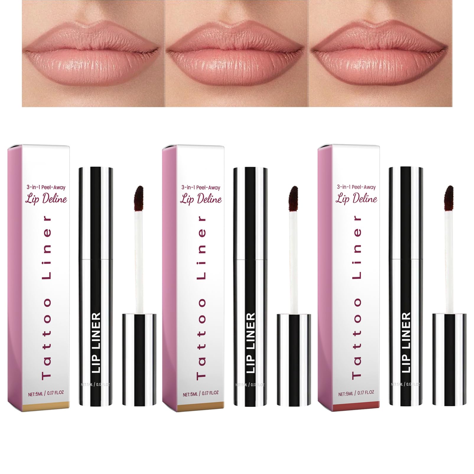 EONFAVE - Set of 3 Peel-Off Lip Pencils - Removable Lip Tint - Waterproof and Smudge-Proof - Long-Lasting Quantity: 3 pieces Colors: Light Brown, Dark Brown, Burgundy Net Contents: 5 ml x 3 Lip Pencil Features: Highly pigmented with good coverage. Non-sticky, won't fade, kiss-proof. Waterproof, smudge-proof, long-lasting. Natural, gentle, and safe formula. Can be used as a lip pencil or lipstick. Easy to use, no tools required. Can be removed without leaving any residue using cleansing oil or makeup remover. How to Use Lip Pencil: 1. Apply an even layer along the lip line and leave for 5 to 10 minutes, depending on the thickness of the application. 2. Once the formula has hardened, slowly peel off the lip gloss film to reveal a smudge-proof, semi-permanent lip gloss. 3. Hot tip: Apply to clean, exfoliated, and dry lips. 4. It can also be used as eyeshadow and blush. HOW TO USE 1. Apply an even layer along the lip line and leave on for 5 to 10 minutes, depending on the thickness of the application. 2. Once the formula has hardened, slowly peel off the lip gloss film to reveal a smudge-proof, semi-permanent lip gloss. 3. Hot tip: Apply to clean, exfoliated, and dry lips. 4. It can also be used as eyeshadow and blush. SAFETY WARNING Number See moreEasy to use: The lip tattoo is easy to use. Simply apply it directly to your lips, leave it on for 5 to 10 minutes, and peel it off. It can also be used as a peel-off lipstick. It removes easily with cleansing oil and lotion. Moisturizing formula: The lip liner contains natural plant extracts that strengthen the lip barrier. It is suitable for all skin tones and easily traces the shape of your lips for a plump, three-dimensional effect. Long-lasting and waterproof: The lipstick contains a waterproof, non-sticky formula, so you don't have to worry about your makeup peeling off when you come into contact with water or sweat. The color won't budge even when you drink, kiss, or eat. Peel-off lip ink: Unlike traditional waterproof lip pencils, the peel-off lip pencil saves time and allows for precise application of long-lasting lipstick. This allows you to easily create a plump, three-dimensional lip contour. The EONFAVE removable lip pencil set includes three beautiful colors: light brown, dark brown, and burgundy. You can choose the perfect shade to complement your lipstick color and personal style.Peel Off Lot de 3 crayons à lèvres mats, longue durée et pelable, avec couleur hautement pigmentée, waterproof, pour femmes et lèvres pulpeusesDESCRIPTION DU PRODUIT DESCRIPTION DU PRODUIT EONFAVE - Lot de 3 crayons à lèvres peel off - Tint à lèvres amovible - Imperméable et résistant aux taches - Longue durée Quantité : 3 pièces. Couleurs : marron clair, marron foncé, bordeaux. Contenu net : 5 ml x 3 Caractéristiques du crayon à lèvres : Hautement pigmenté avec un bon pouvoir couvrant. Non collant, ne se décolore pas, résiste aux baisers. Imperméable à l'eau, résistant aux taches, effet longue durée Formule naturelle, douce et sûre. Peut être utilisé comme crayon à lèvres ou rouge à lèvres. Facile à utiliser, aucun outil nécessaire. Peut être retiré sans laisser de traces avec de l'huile démaquillante ou du démaquillant. Mode d'emploi du crayon à lèvres : 1. Appliquez une couche uniforme le long de la ligne des lèvres et laissez agir 5 à 10 minutes, selon l'épaisseur de l'appliquer. 2. Une fois que la formule a durci, décollez lentement le film brillant à lèvres pour obtenir un brillant à lèvres semi-permanent résistant aux taches. 3. Astuce chaude : appliquer sur des lèvres propres, exfoliées et sèches. 4. Il peut également être utilisé comme fard à paupières et fard à joues. MODE D'EMPLOI 1. Appliquez une couche uniforme le long de la ligne des lèvres et laissez agir 5 à 10 minutes, selon l'épaisseur de l'appliquer. 2. Une fois que la formule a durci, décollez lentement le film brillant à lèvres pour obtenir un brillant à lèvres semi-permanent résistant aux taches. 3. Astuce chaude : appliquer sur des lèvres propres, exfoliées et sèches. 4. Il peut également être utilisé comme fard à paupières et fard à joues. AVERTISSEMENT DE SÉCURITÉ Numéro Voir plusFacile à utiliser : le tatouage pour les lèvres est facile à utiliser. Il suffit de l'appliquer directement sur les lèvres, de le laisser agir pendant 5 à 10 minutes et de le retirer. Il peut également être utilisé comme rouge à lèvres Peel Off. S'enlève facilement avec de l'huile démaquillante et de la lotion. Formule hydratante : le crayon contour des lèvres contient des extraits naturels de plantes qui renforcent la barrière des lèvres. Il est adapté à tous les tons de peau et retrace facilement la forme des lèvres pour un relief rebondi en trois dimensions. Durable et résistant à l'eau : le rouge à lèvres contient une formule imperméable qui ne colle pas, de sorte que vous n'avez pas à vous soucier que le maquillage se décolle lorsque vous entrez en contact avec de l'eau ou de la sueur. La couleur ne se détache pas même lorsque vous buvez, vous embrassez ou mangez. Encre à lèvres Peel Off : contrairement aux crayons à lèvres imperméables traditionnels, le crayon à lèvres Peel Off permet d'économiser du temps et permet une application précise du rouge à lèvres longue durée. Ainsi, vous pouvez facilement créer un contour de lèvres rebondi et tridimensionnel. Lot de crayons à lèvres 3 couleurs : le crayon à lèvres amovible EONFAVE contient 3 magnifiques couleurs : marron clair, marron foncé et bordeaux. Vous pouvez choisir l'un d'entre eux en fonction de la couleur de votre rouge à lèvres et de votre style.