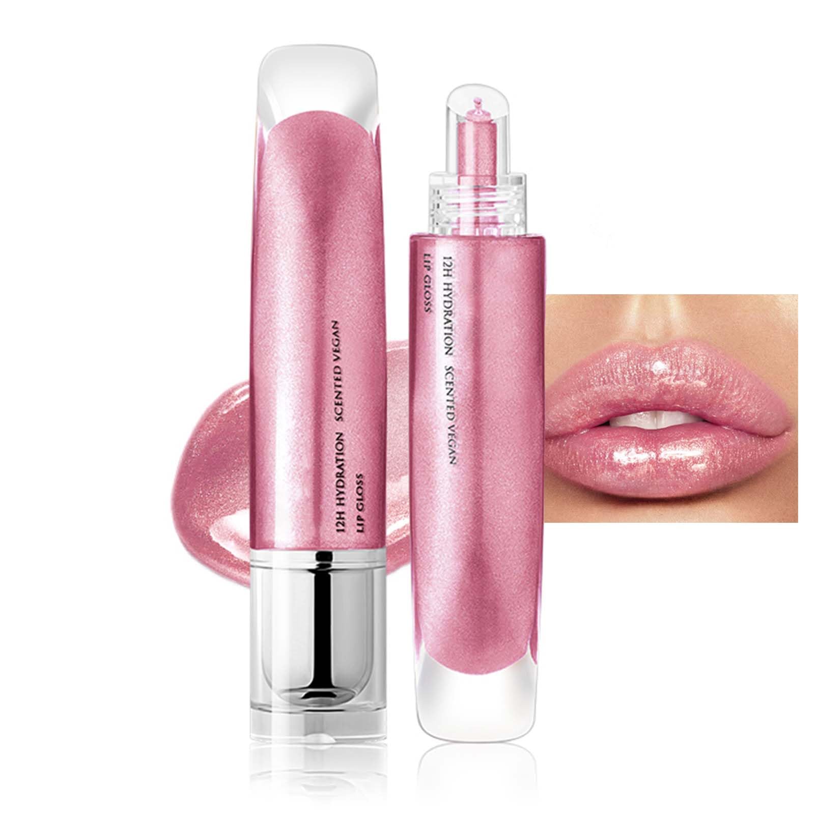 EONFAVE Shiny Glitter Lip Gloss Liquid Lipstick with Diamond Glitter 3D Moisturizing Lip Gloss Long Lasting Nude Pink Highly Pigmented Lips (07# 10g)