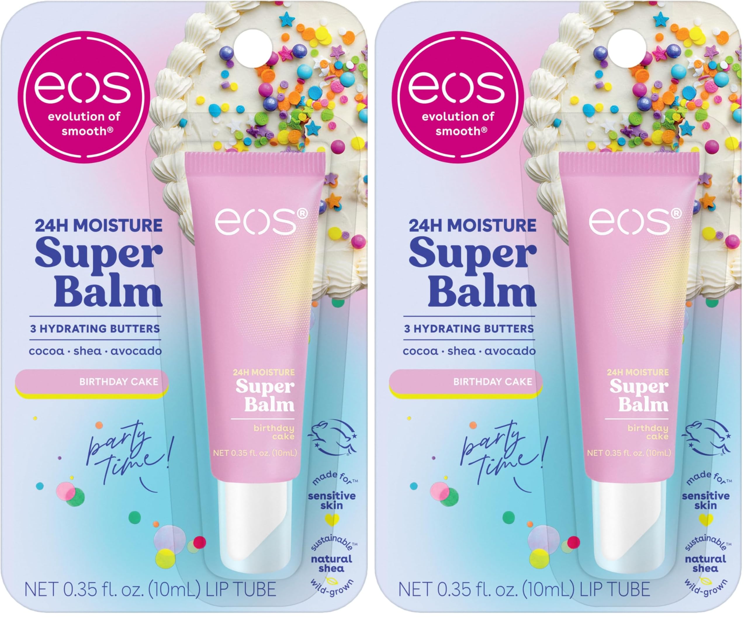 eos 24H Moisture Super Balm - Birthday Cake Lip Mask Day or Night Lip Treatment Made for Sensitive Skin Nourishing Shea Butter 0.35 fl oz (Pack of 2)