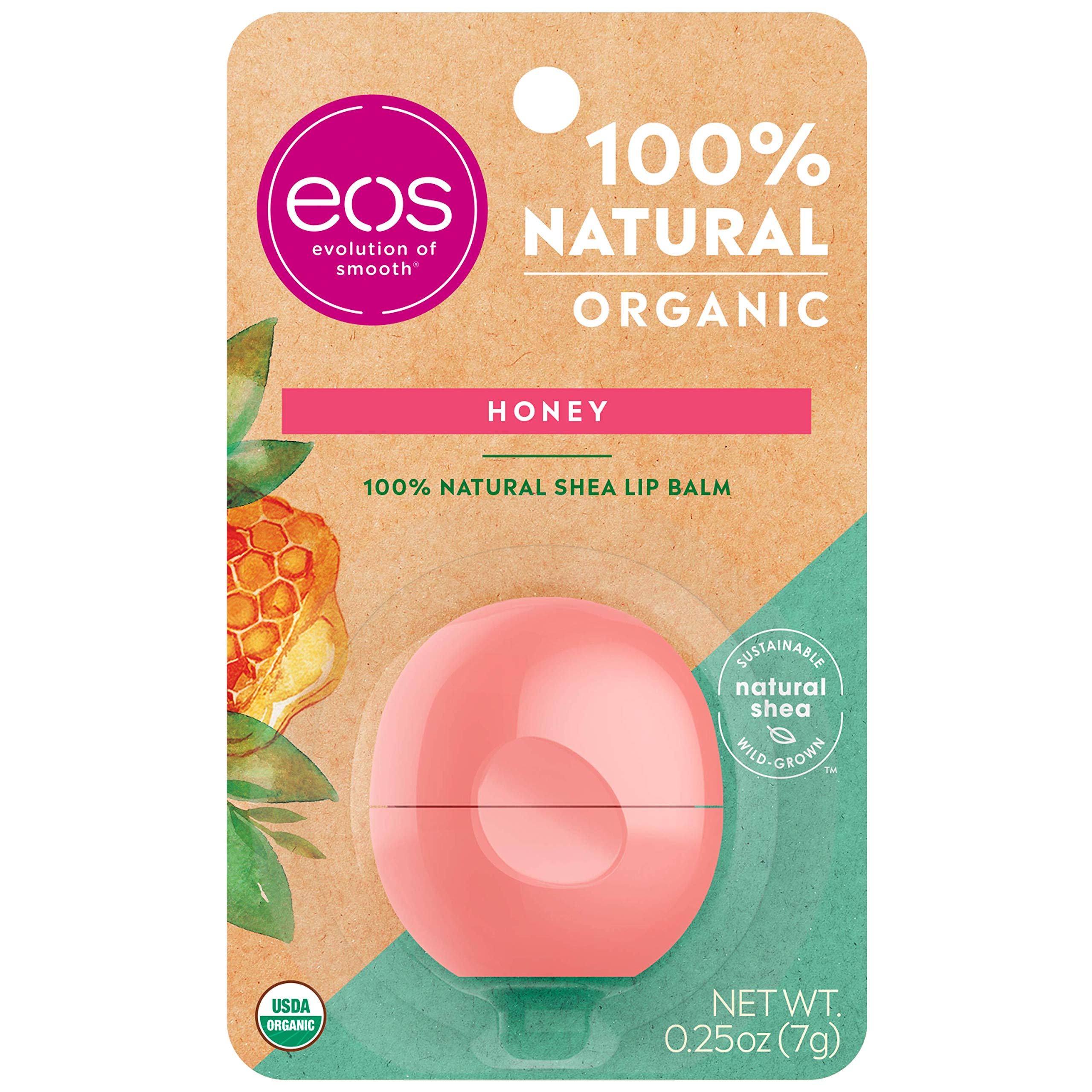 Discover a lip balm that's 100 natural and 100 delicious. Our all-natural Honey flavor tastes like wildflower honey dripping right from the honeycomb.USDA Certified Organic, sustainably-sourced shea butter and all natural flavors—because good-for-you can be delicious too. We make our eos 100 Natural Shea Lip Balm with wild-grown shea butter and hydrating coconut and jojoba oils for long-lasting hydration.