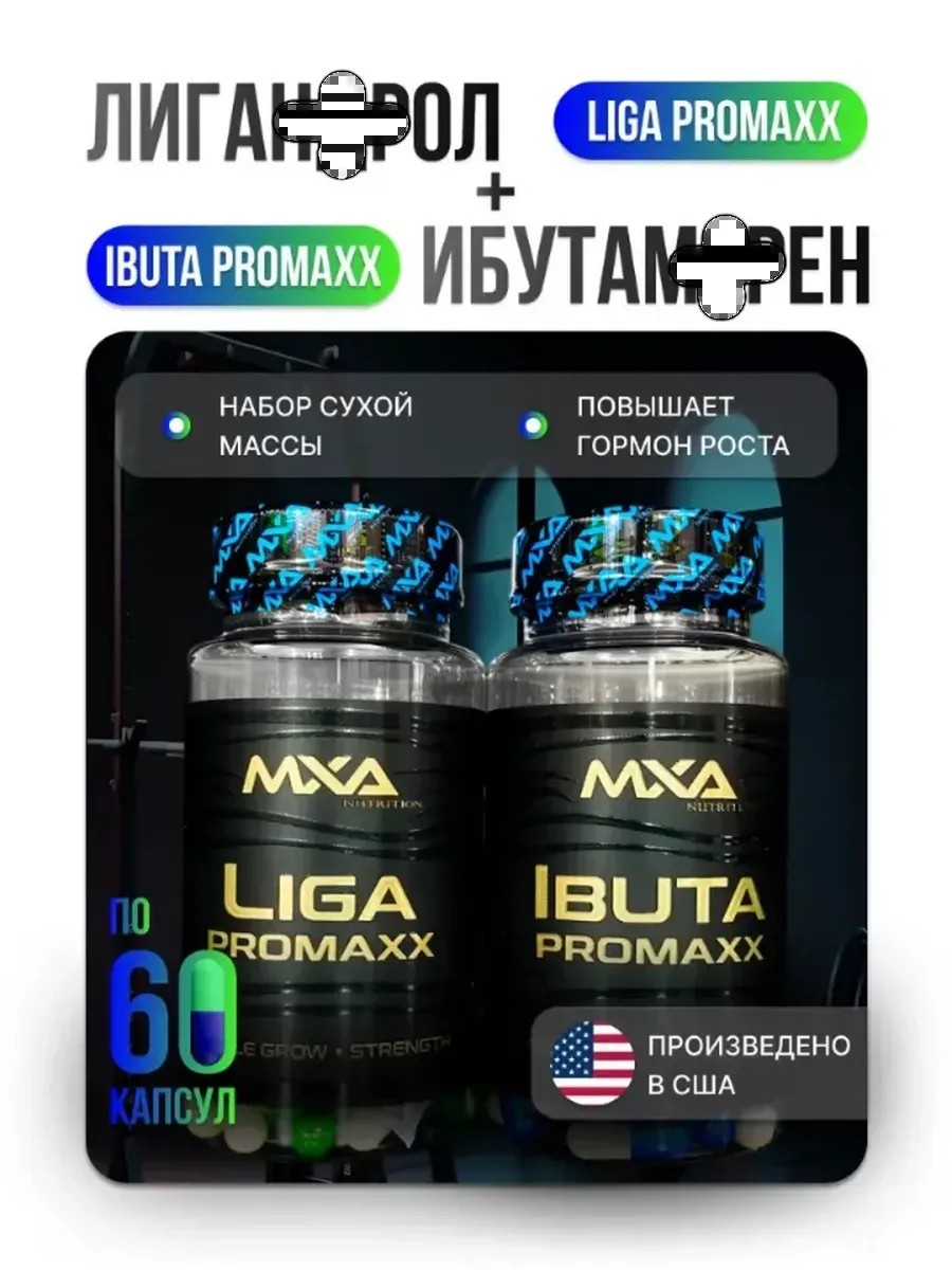 Готовая связка для набора мышечной массы 10-15 кг масса/мышцы. Если не знаете, с чего начать, то лучше связки вы не найдете. Безопаснаые и действенные капсулы для нбаора массы и мышц. IBUTA PROMAXX + LIGA PROMAXX