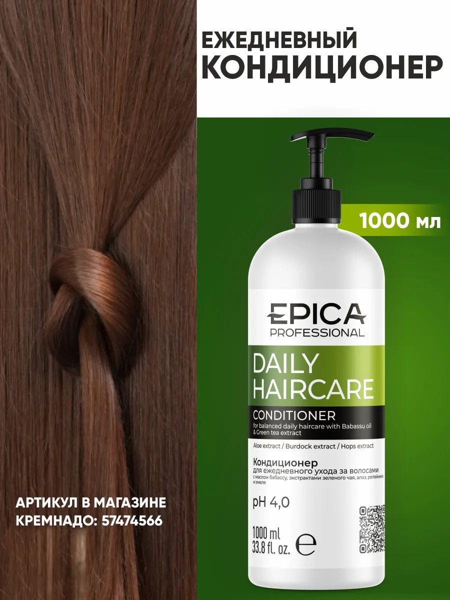 Кондиционер для ежедневного применения — идеальное решение для заботы о волосах. Кондиционер эпика разработан специально для частого использования, обеспечивая мягкое и эффективное действие. Кондиционер epica дает дополнительную защиту от УФ-лучей. Благодаря активным компонентам эпика professional интенсивно питает, освежает и тонизирует волосы. Экстракт алоэ ускоряет метаболические процессы, повышает эластичность прядей, стимулирует образование коллагена.