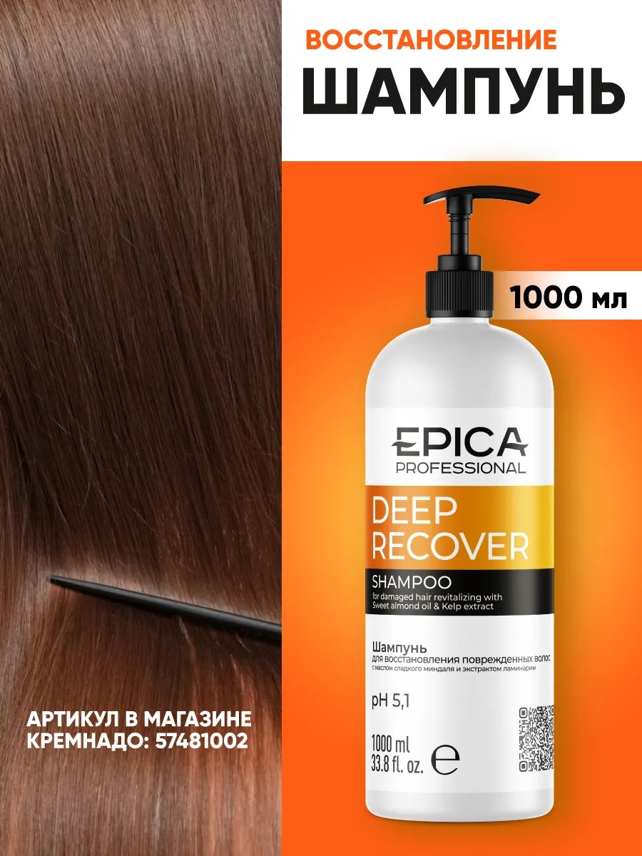 Шампунь восстанавливающий от epica professional — это специальное средство, разработанное для ухода за ослабленными, поврежденными и тусклыми волосами. Epica шампунь для волос помогает вернуть им силу, упругость и здоровый блеск, делая их более крепкими и устойчивыми к внешним воздействиям. В состав шампуня для восстановления волос входят активные ингредиенты, которые проникают глубоко в структуру волоса, заполняя пустоты и восстанавливая поврежденные участки. Масло сладкого миндаля чрезвычайно полезно для сухих, изможденных, ломких волос — создавая защитный барьер на поверхности прядей, оно сохраняет влагу, оберегает их от обезвоживания и агрессивных факторов среды в течение дня, а заодно придает им блеск. Экстракт ламинарии нормализует работу сальных желез, насыщает волосы влагой и необходимыми микроэлементами, поддерживая естественный гидробаланс. Натуральный состав делает пряди послушными, мягкими и эластичными. При регулярном использовании шампуня для восстановления волос волосы становятся более мягкими, эластичными и легко поддаются укладке. Они приобретают здоровый блеск, а также становятся менее подверженными негативному воздействию окружающей среды и механическим повреждениям. Шампунь для волос профессиональный восстанавливающий подходит для поврежденных и безжизненных волос. Для достижения максимального эффекта рекомендуется использовать шампунь в комплексе с другими средствами для ухода за волосами Deep Recover бренда epica профессионал, такими как кондиционеры, маски и сыворотки. Восстанавливающий шампунь — это незаменимый помощник в уходе за ослабленными волосами. Он помогает вернуть им силу, упругость и здоровый блеск, делая их более крепкими и устойчивыми к внешним воздействиям. Epica professional шампунь женский - идеальный на подарок маме, подруге, любимой, коллеге на день рождения, 8 марта, Новый год, День Святого Валентина. Рекомендуем использовать в комплексе с профессиональной серией уходовой косметики для волос EPICA / ЭПИКА.