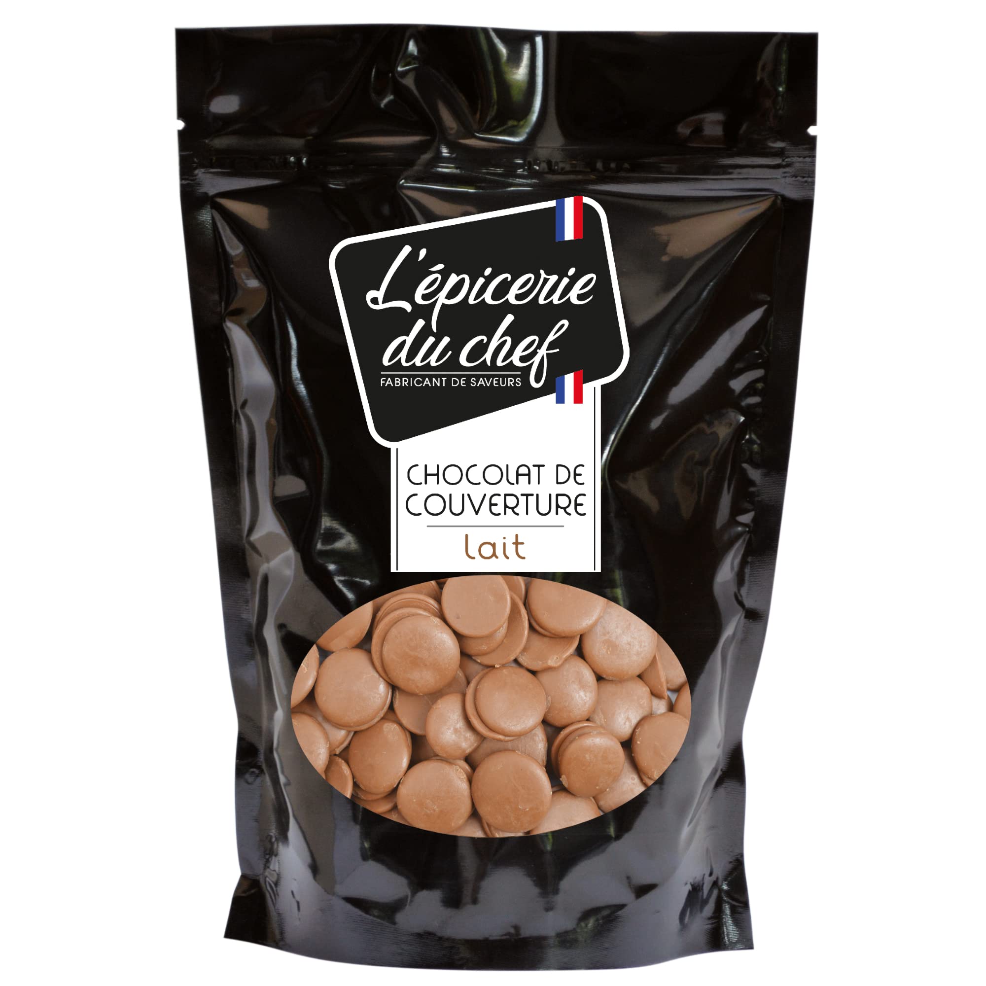 : Resealable bag of milk chocolate couverture discs. Ideal for your desserts, chocolate molds, and fondues. Net weight: 500g. Ingredients: Sugar, cocoa butter, whole milk powder, cocoa mass, emulsifier: soy lecithin, natural vanilla flavoring. May contain traces of nuts, gluten, eggs, milk, sesame seeds, lupin, soy, fish, peanuts, and sulfites. Cocoa: 35 minimum. Instructions for use: Store away from light and moisture after opening. See moreFRENCH BRAND - L'Épicerie du Chef is a French brand that designs baking ingredients and utensils for professionals and experienced home bakers seeking quality and large quantities. Our food products are manufactured and or packaged in France, in our workshops in Fondettes (37). DISCOVER OUR RANGE - Try our other cocoa-based ingredients: White Chocolate Discs (200g: ref. 8789 500g: ref. 8634), Milk Chocolate Discs (200g: ref. 8788) and Dark Chocolate Discs (200g: ref. 8787 500g: ref. 8632). Also available in chunks and chocolate chips. INTENSE TASTE - Milk chocolate made with cocoa mass (minimum 35 cocoa content) for professional-quality results. Intense, indulgent, and balanced milk chocolate flavor. Perfect for all your chocolate recipes: mousses, fondants, hot chocolate, cupcakes, tarts, ice cream, entremets, cakes, lava cakes, soft cakes, brownies, homemade chocolates—anything is possible! RESEALABLE BAG - This resealable airtight bag contains 500g of milk chocolate. The disc format is easy to measure and melt. The discs should be melted in a double boiler for a few minutes before use. MILK CHOCOLATE FOR YOUR DESSERTS - A 500g bag of milk chocolate discs to melt for your baking needs. Ideal for desserts, moldings, fondues, coatings, or ganaches. These chocolate discs are highly valued in baking because they melt perfectly (much better than chocolate bars).Description du produit Sachet référmable de palets de chocolat de couverture au LAIT. Idéal pour vos desserts, moulages en chocolat, fondues. Poids net: 500 g. Ingrédients Sucre, beurre de cacao, poudre de LAIT entier, pâte de cacao, émulsifiant : lécithine de SOJA, arôme naturel de vanille. PEUT CONTENIR DES TRACES DE FRUITS A COQUE, GLUTEN, ŒUFS, LAIT, GRAINES DE SESAME, LUPIN, SOJA, POISSON, ARACHIDES, SULFITES. Cacao : 35 minimum P.when('A').execute(function(A) { A.on('a:expander:toggle_description:toggle:collapse', function(data) { window.scroll(0, data.expander. expander[0].offsetTop-100) }) }) Mode d'emploi Conservez à l'abri de la lumière et de l'humidité après ouverture. Voir plusMARQUE FRANÇAISE - L'Épicerie du Chef est une marque française qui conçoit des ingrédients et ustensiles de pâtisserie dédiés aux professionnels et aux pâtissiers amateurs confirmés recherchant qualité et grands conditionnements. Nos produits alimentaires sont fabriqués et ou conditionnés en France, dans nos ateliers à Fondettes (37). DÉCOUVREZ NOTRE GAMME - Essayez nos autres ingrédients à base de cacao : Palets de Chocolat Blanc (200g : ref. 8789 500g : ref. 8634), Palets de Chocolat Lait (200g : ref. 8788) et Palets de Chocolat Noir (200g : ref. 8787 500g : ref. 8632). Existe aussi en format chunks et pépites de chocolat. GOÛT INTENSE - Chocolat au lait à base de pâte de cacao (contenance 35 de cacao minimum) pour un résultat digne d'un professionnel. Goût de chocolat au lait intense, gourmand et équilibré. Pour réaliser toutes vos recettes à base de chocolat : mousses, fondants, chocolat chaud, cupcakes, tartes, glaces, entremets, cakes, coulants, moelleux, brownies, chocolats maisontout est possible !. SACHET REFERMABLE - Ce sachet hermétique refermable contient 500g de chocolat au lait. Format palets facile à doser et à faire fondre. Les palets devront êtres fondus au bain marie pendant quelques minutes avant leur utilisation. CHOCOLAT AU LAIT POUR VOS DESSERTS - Un sachet de 500g de palets de chocolat au lait à faire fondre pour vos besoins en pâtisserie. Idéal pour vos desserts, moulages, fondues, enrobages ou ganaches. Les palets ou pistoles de chocolat sont fort appréciés en pâtisserie car ils fondent parfaitement (bien mieux que des carrés de chocolat en tablettes).Epicerie du Chef Palets de Chocolat au Lait 500g - Chocolat de Couverture pour Desserts, Pâtisseries, Gâteaux, Glaçages - Ingrédient 35 cacao minimum - EDC8633 500 g (Lot de 1)