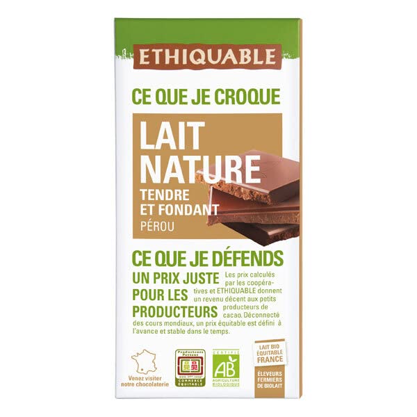 Ethiquable - Tablette Chocolat Lait Tendre Et Fondant Pérou 100G - Lot De 3