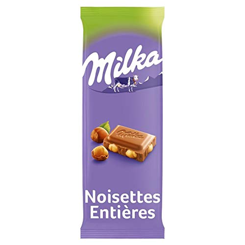 Indulge in the delicious Milka bar of rich Alpine milk chocolate combined with whole hazelnuts. INGREDIENTS Ingredients: Sugar, HAZELNUTS, cocoa butter, skimmed MILK powder, cocoa mass, WHEY powder (from MILK), concentrated BUTTER, emulsifier (SOY lecithin), HAZELNUT paste, flavoring. Cocoa: 30 minimum in the Alpine milk chocolate. MAY CONTAIN OTHER NUTS AND WHEAT. INSTRUCTIONS FOR USE See more