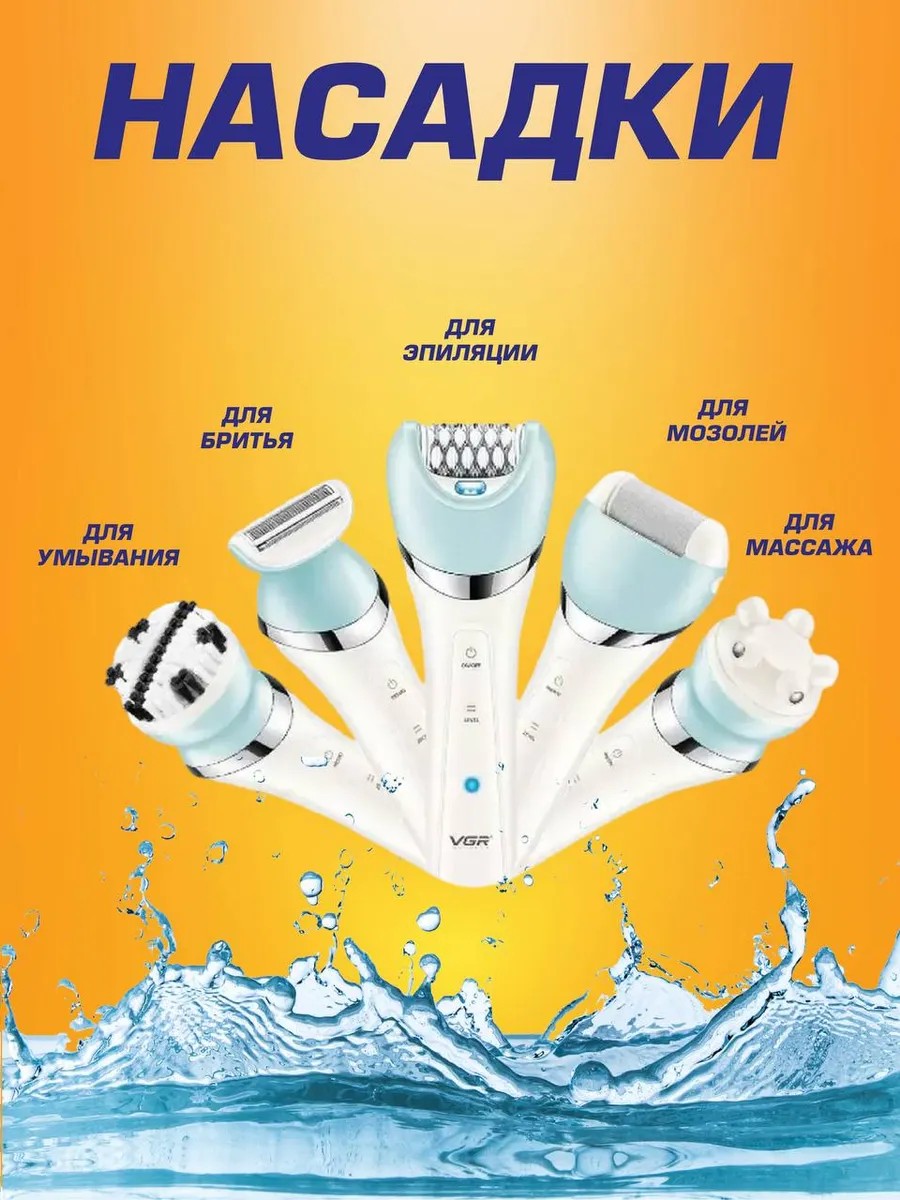 Эпилятор V-703 обладает отличной системой пилинга и массажа. Благодаря этому, обладательницы данного устройства могут всегда иметь гладкую кожу без нежелательных волосков без малейшей вероятности появления болезненных ощущений во время проведения процедуры. Цена VGR V-703 вполне оправдана, так как в стандартной комплектации эпилятор поставляется в комплекте с практически самым полным набором насадок. Среди них можно выделить насадку-щётку для глубокого пилинга, которая при помощи щетинок при регулярном использовании помогает исключить возможность врастания волосков под поверхность кожи, и насадку для глубокого массажа, которая позволяет улучшить внешний вид кожи, стимулируя кровообращение и повышая регенерацию. Также, в комплект входит насадка-пемза для мягкого пилинга стоп, при помощи которой можно эффективно удалять ороговевшие клетки кожи, в то же время, стимулируя её восстановление. VGR V-703 прост и удобен в эксплуатации, работает от встроенного аккумулятора. Отсутствие провода питания способствует комфорту и позволяет не привязываться к расположению розеток в помещении. Продолжительность непрерывного функционирования на одном заряде составляет 200 минут. Для подзарядки батареи в комплекте имеется сетевой адаптер, время зарядки 150 мин. В комплекте имеется щеточка для очищения насадок. Эпилятор имеет два рабочих режима, подсветку, благодаря чему можно регулировать скорость вращения головок, тем самым уменьшая болевые ощущения. Модель отличается эргономичным корпусом, имеет плавные контуры и специальную нескользящую поверхность. Электрический эпилятор VGR V-703 5 функций в 1 обеспечит вам комфортный и безболезненный уход за кожей для ежедневного использования!