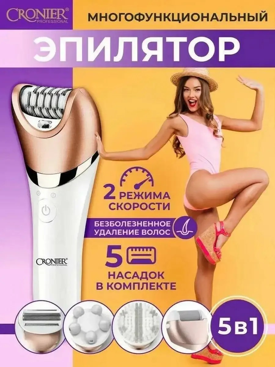 Эпилятор женский 5в1 для бикини, ног, подмышек, тела, пяток - идеальный выбор для удаления волос в труднодоступных зонах, а также насадка для чистки пяток, насадка для бритья, массажный ролик, фонарик для подсветки, щеточка для пилинга! В комплекте щеточка для очищения насадок. Депилятор 5 в 1 имеет 2 рабочих режима, благодаря чему регулируется скорость вращения головок, уменьшая болевые ощущения, выбирайте удобную скорость для себя. Ручной мини электро депилятор можно использовать для эпиляции в домашних условиях, ничем не уступает профессиональному. Возможна сухая влажная эпиляция, женская мужская депиляция, подойдет для бровей, благодаря крышке ограничителю, а также для интимной зоны. Пемза для пяток, женская или мужская электробритва, электро бритва для женщин, для мужчин для бритья эпиляция подмышек усов. Компактный домашний прибор - триммер для женщин, для интимной гигиены, удаления волос обеспечит безопасный и комфортный уход за телом. Действие эпилирующей головки подразумевает мультипинцетную систему депилятор (удаление самых коротких волосков). Частота щипков зависит от выбранной скорости. Роторный двигатель электроэпилятор с насадками обеспечивает низкую вибрацию и низкий уровень шума эпилятора. Портативный многофункциональный аккумуляторный бесшумный триммер депилятор эпилятор для женщин имеет полный набор сменных насадок для ухода за кожей лица и тела: бритва для бритья для рук, ног и других частей тела, пемза ,электрическая пилка для ног (стопы, пятки), эпилирующая головка, массажная насадка для лица и тела (лифтинг, подтягивает кожу, удирает мешки под глазами, выравнивает рельеф, разглаживает морщинки), бритвенная головка электробритва, массажная щетка . Водонепроницаемый корпус, косметический аппарат депиляторы оснащен фонариком для удаления самых тонких волосков на чувствительной коже. Для подзарядки батареи в комплекте имеется кабель. Эпилятор - отличный подарок на любой праздник.