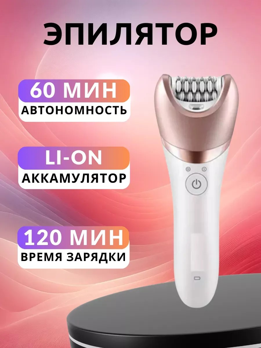 Универсальное устройство, 5в1, которое обеспечивает безболезненный и комфортный уход за кожей. Головка эпилятора захватывает даже короткие волоски. В комплекте поставки идут: насадка-массажер для обработки кожи до и после эпиляции, головка с бритвой, удобный триммер для зоны бикини, насадка для пилинга тела, насадка-пемза для обработки пяток. Есть интегрированная подсветка, компактные размеры и небольшой вес, что позволяет брать устройство с собой в поездки. Работает на аккумуляторе, обеспечивающем до 90 минут работы после зарядки за 3 часа. Комплектация: эпилятор, насадки для эпиляции, бритва, щетка для пилинга тела, триммер для деликатных зон, насадка-пемза, адаптер для зарядки, щеточка.