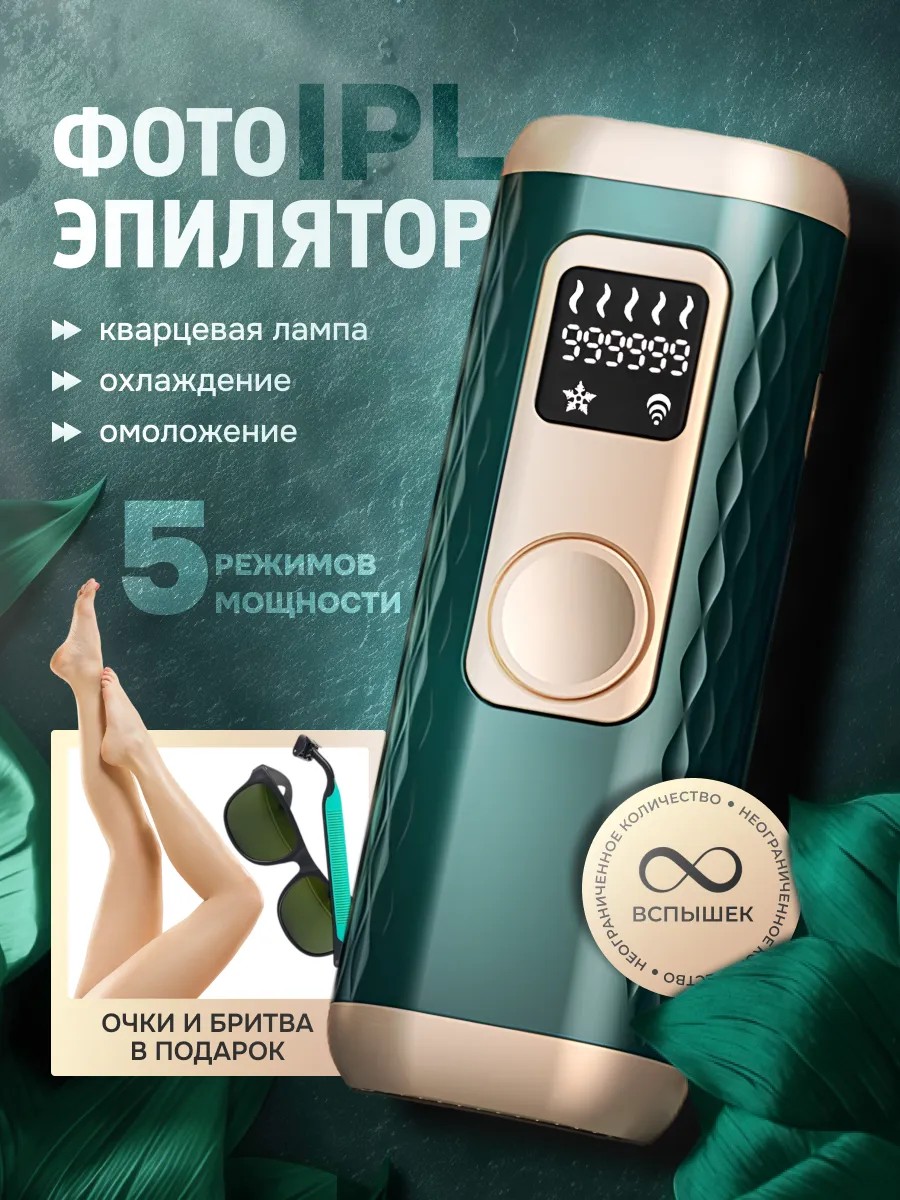 | Комплектация | фотоэпилятор; бритва; Защитные очки; Инструкция на русском языке; блок питания |